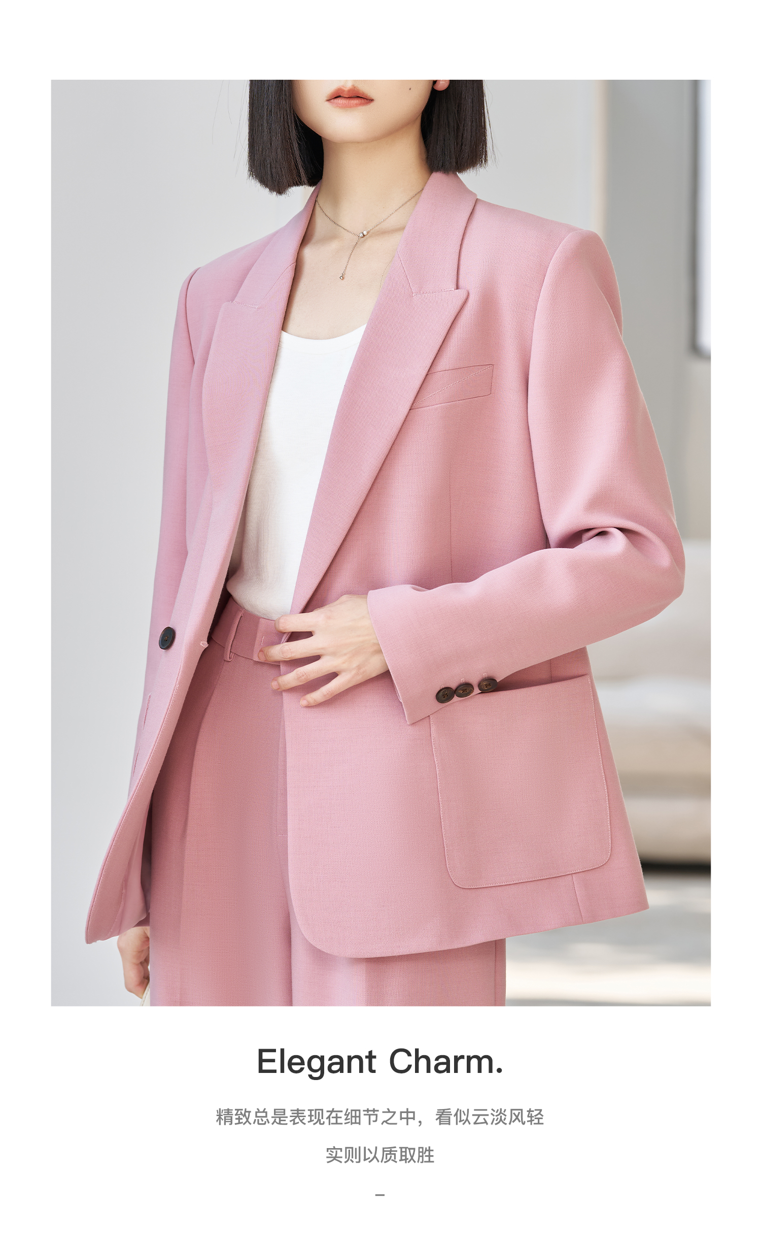 剩S/M/L/XL/XXL 米思阳2025春季新款轻奢高端羊毛混纺西装外套职场穿搭上衣女5733