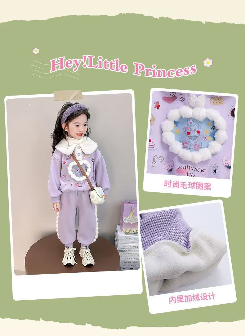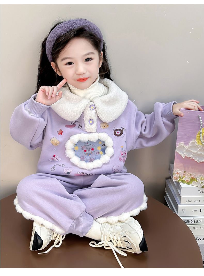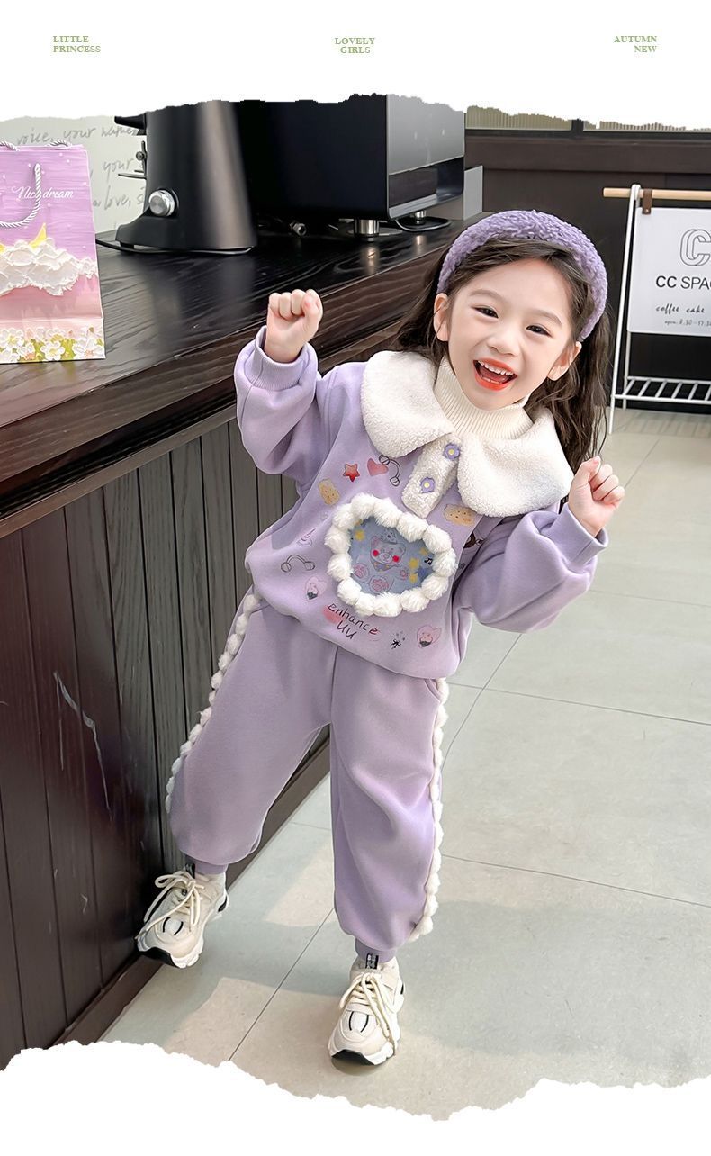 女童冬装套装 儿童加绒加厚休闲两件套洋气女宝宝