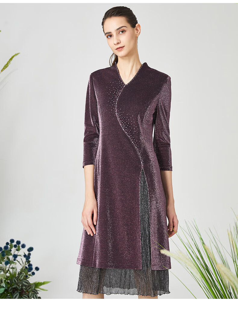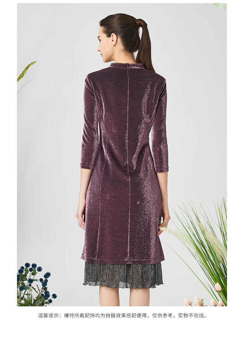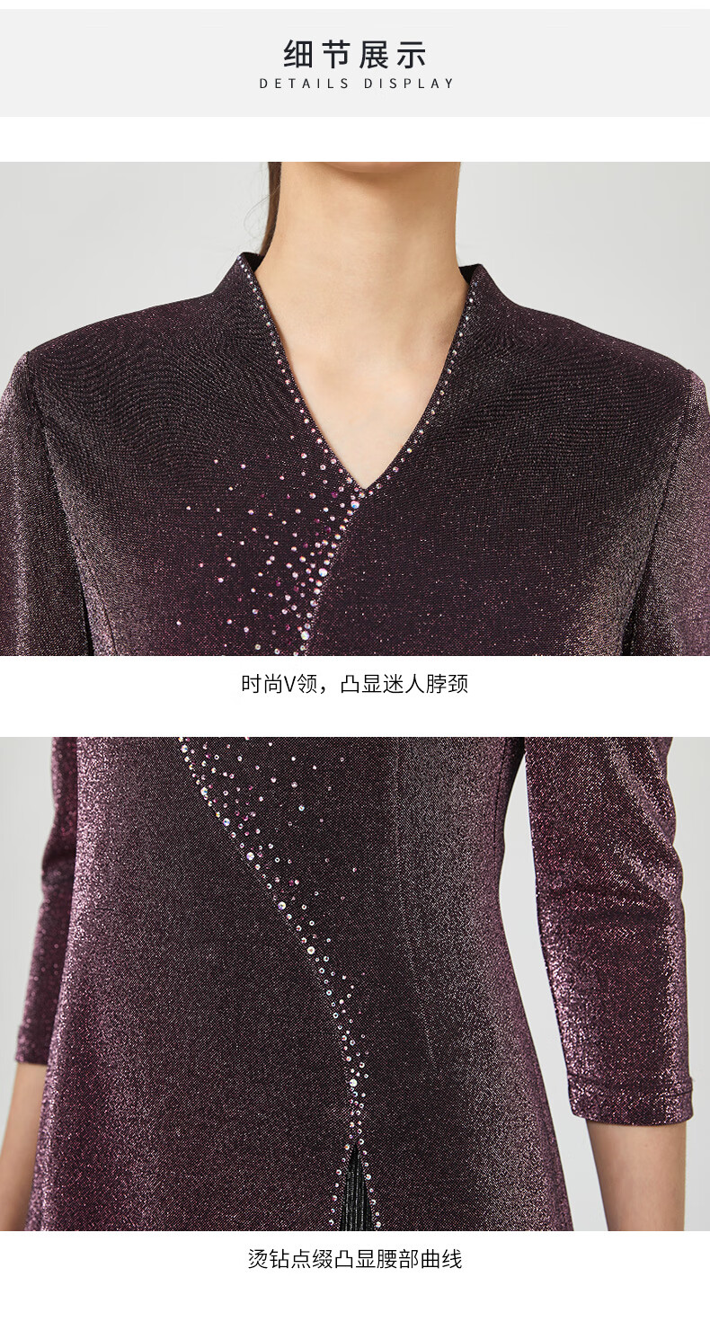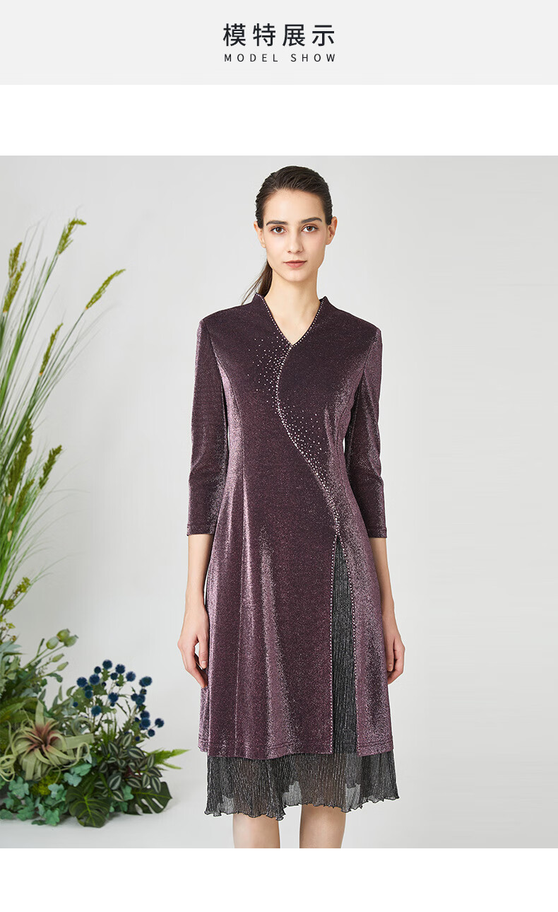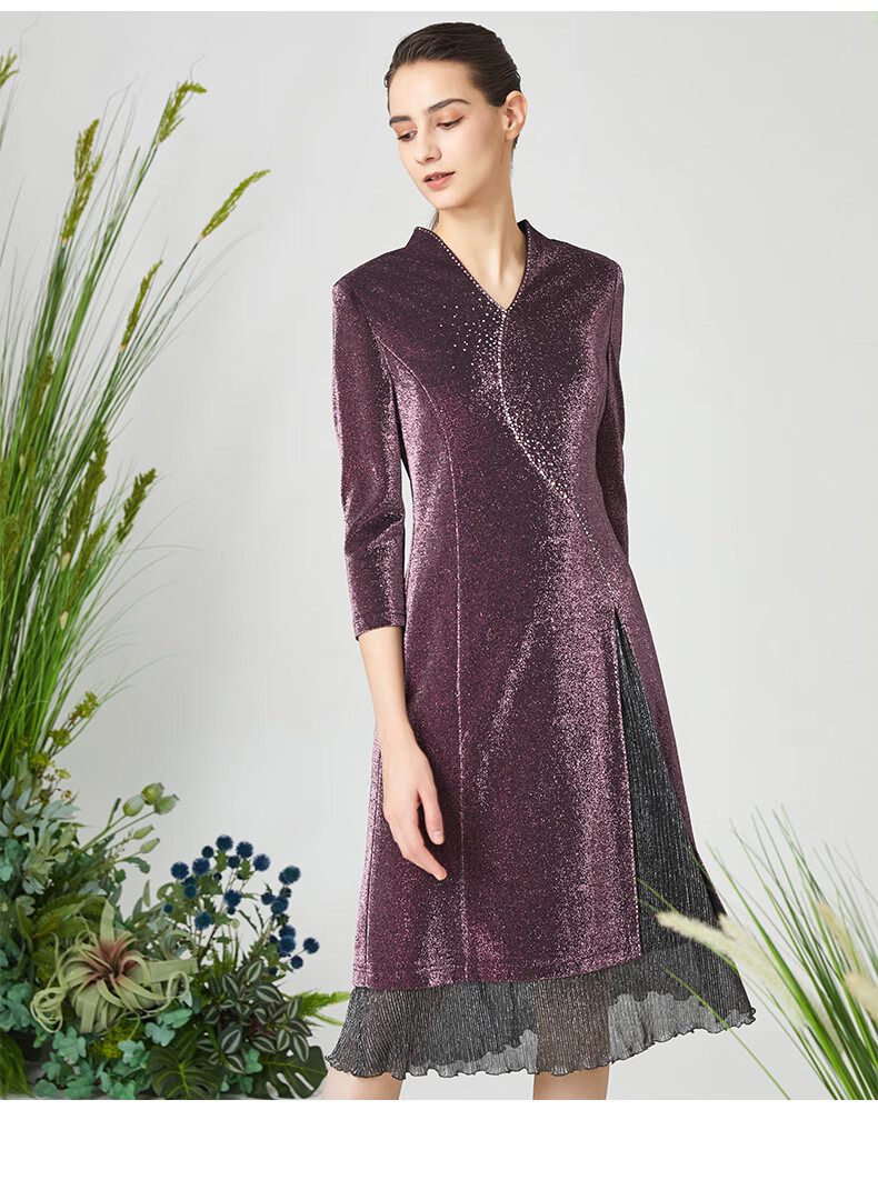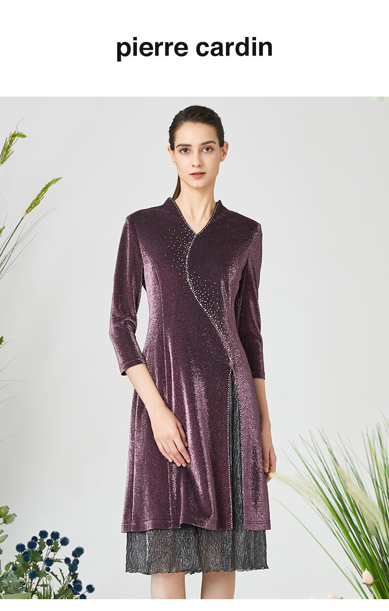 皮尔卡丹女装春季新款高端宴会礼服紫色连衣裙P3141E3034Z0