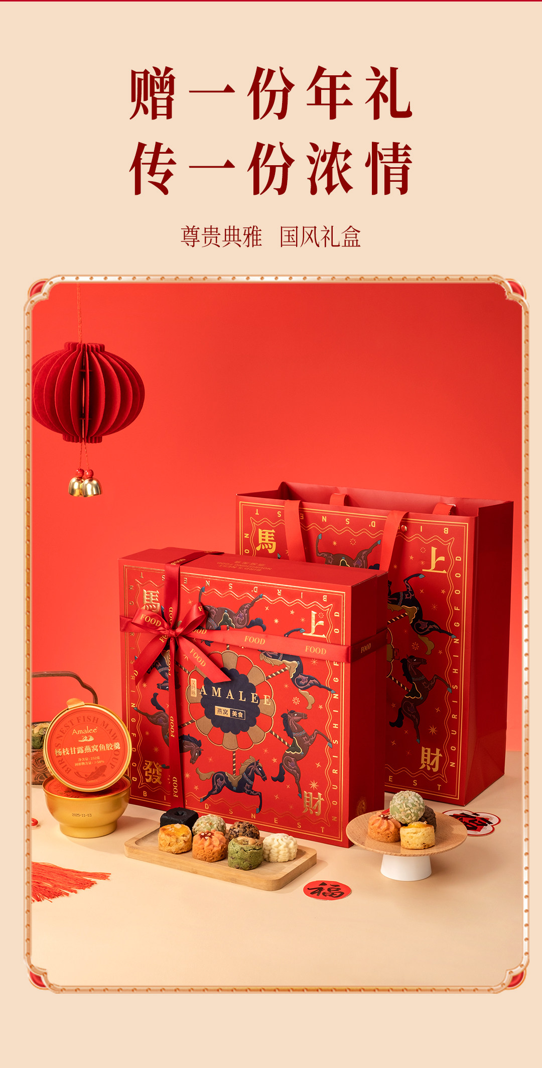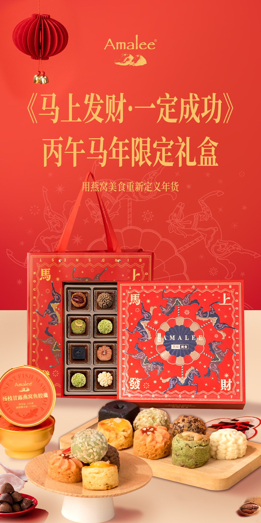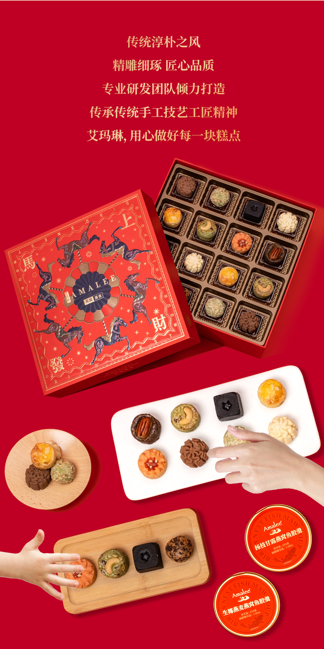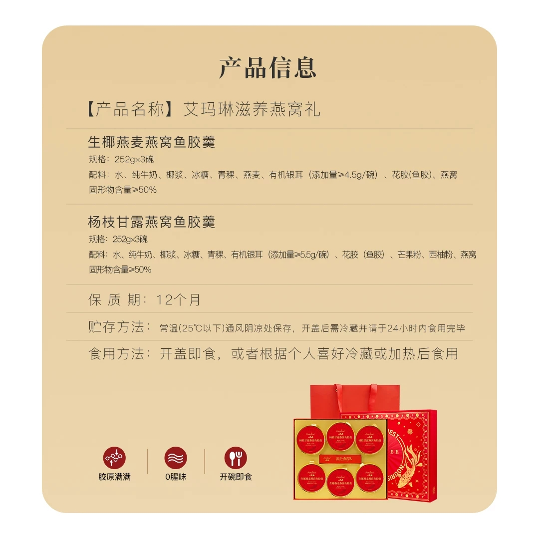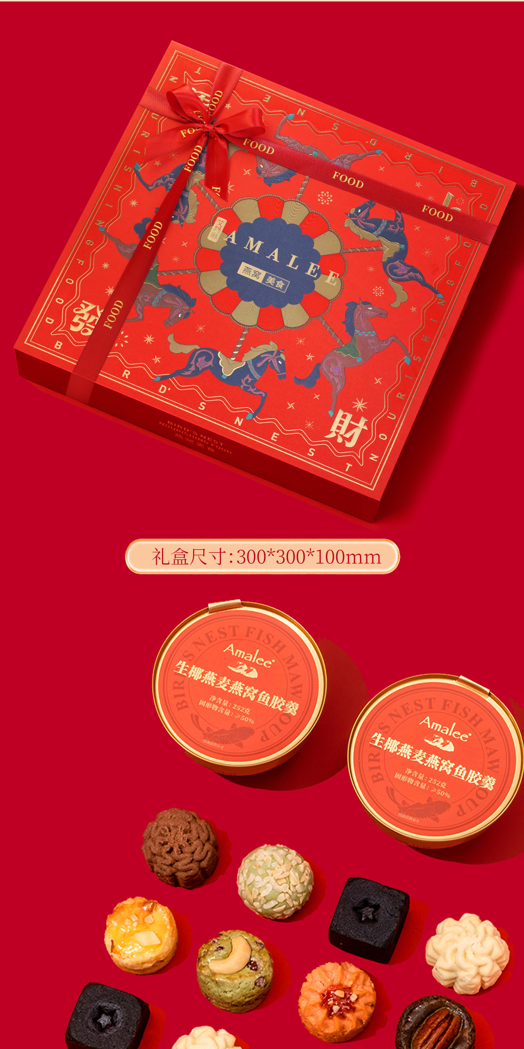 【汇总SKU】Amalee艾玛琳 马年燕窝鱼胶糕点礼盒 鲜炖燕窝即食燕窝 孕妇产妇老人营养滋补品礼盒装 木糖醇 冰糖燕窝