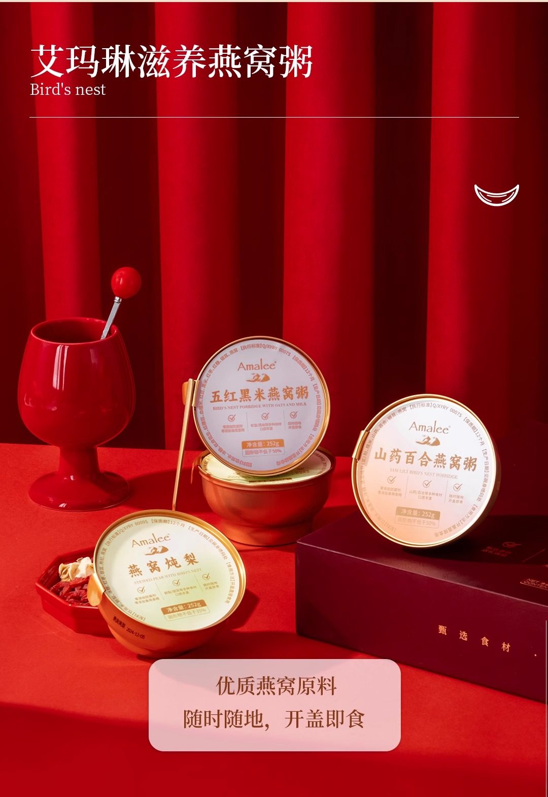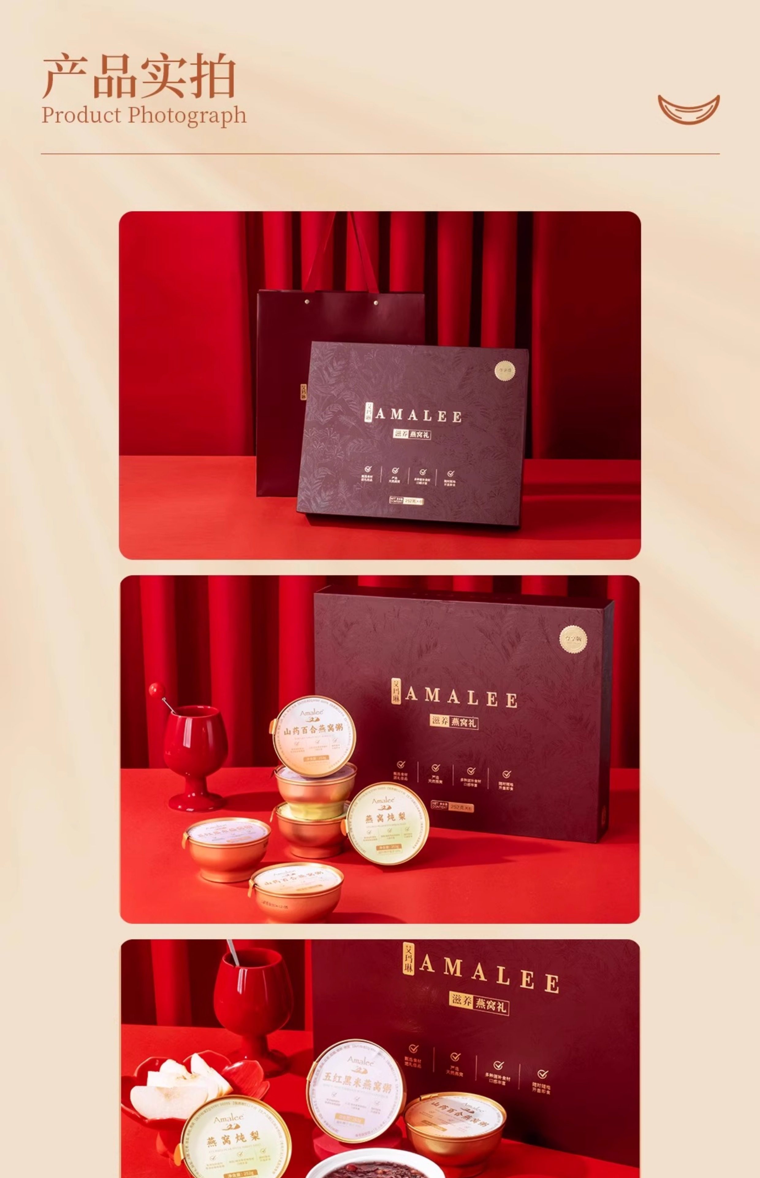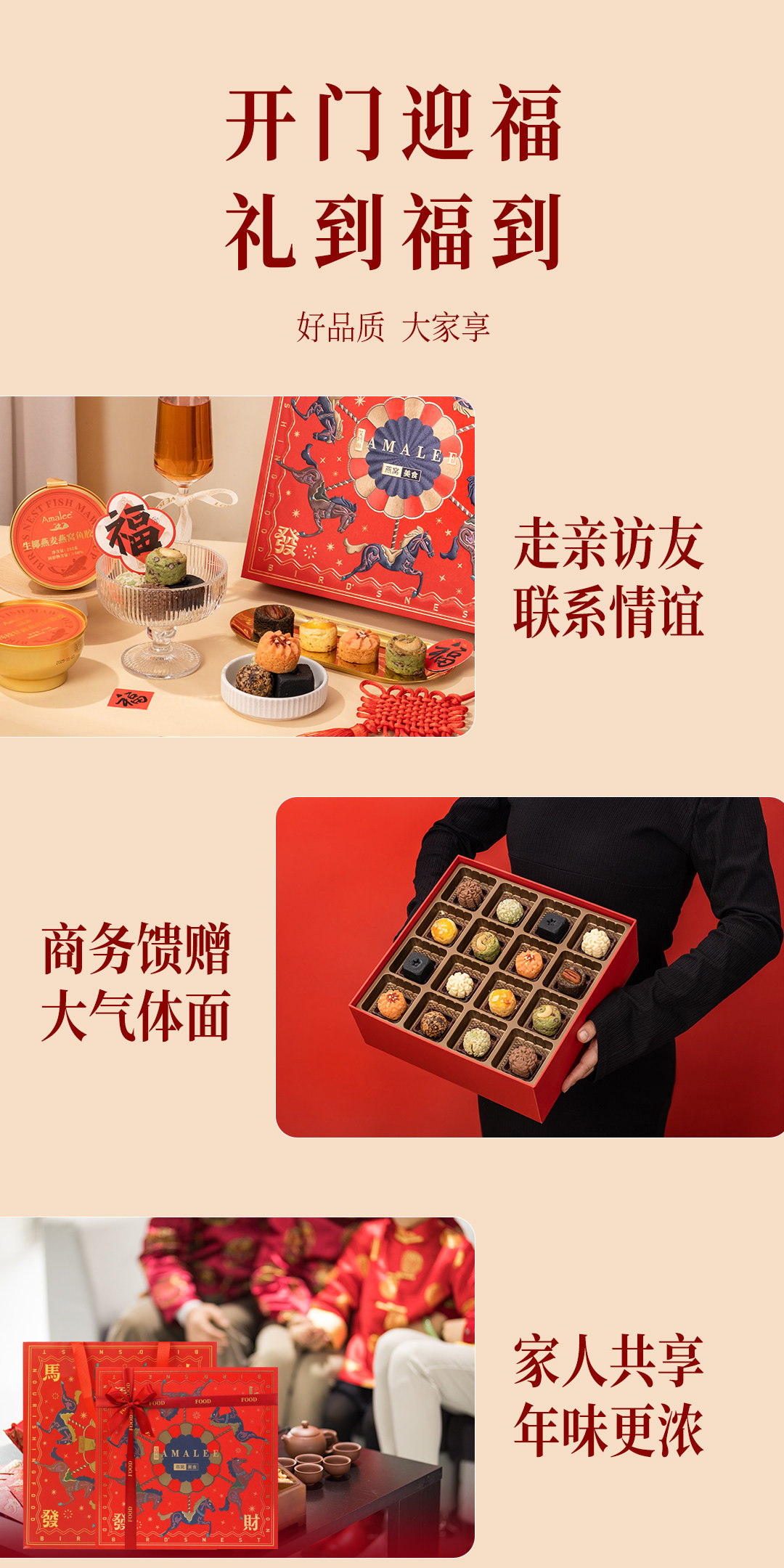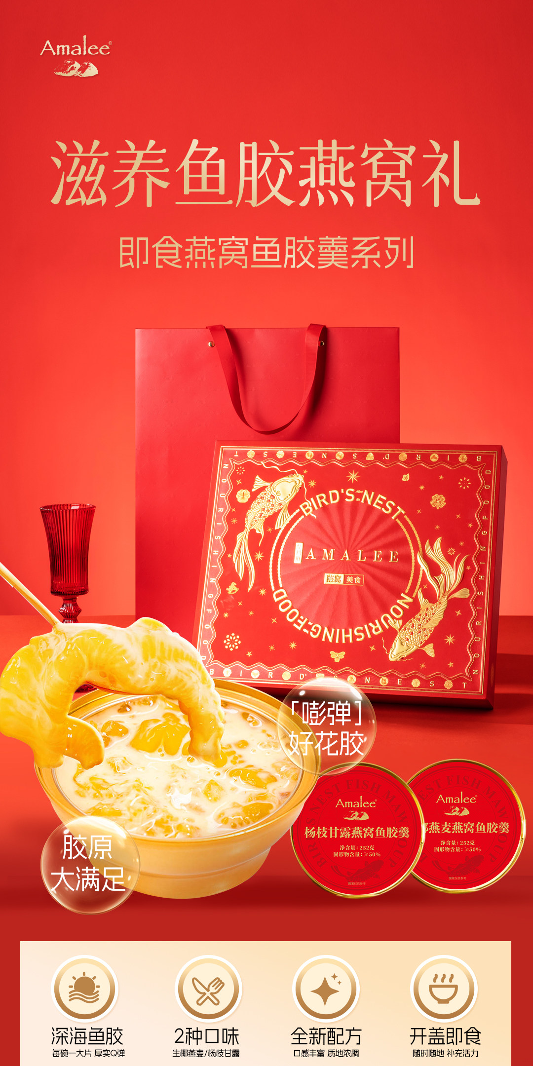 【汇总SKU】Amalee艾玛琳 马年燕窝鱼胶糕点礼盒 鲜炖燕窝即食燕窝 孕妇产妇老人营养滋补品礼盒装 木糖醇 冰糖燕窝