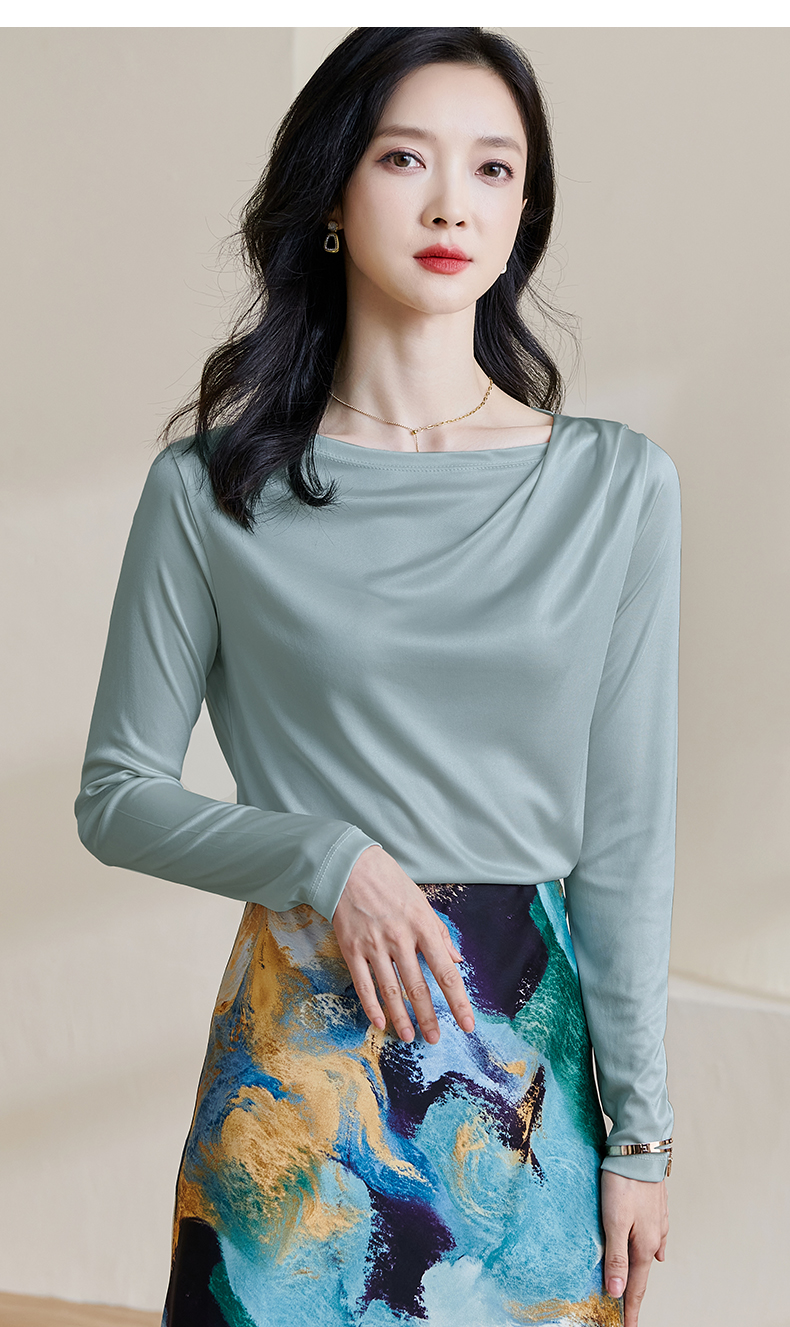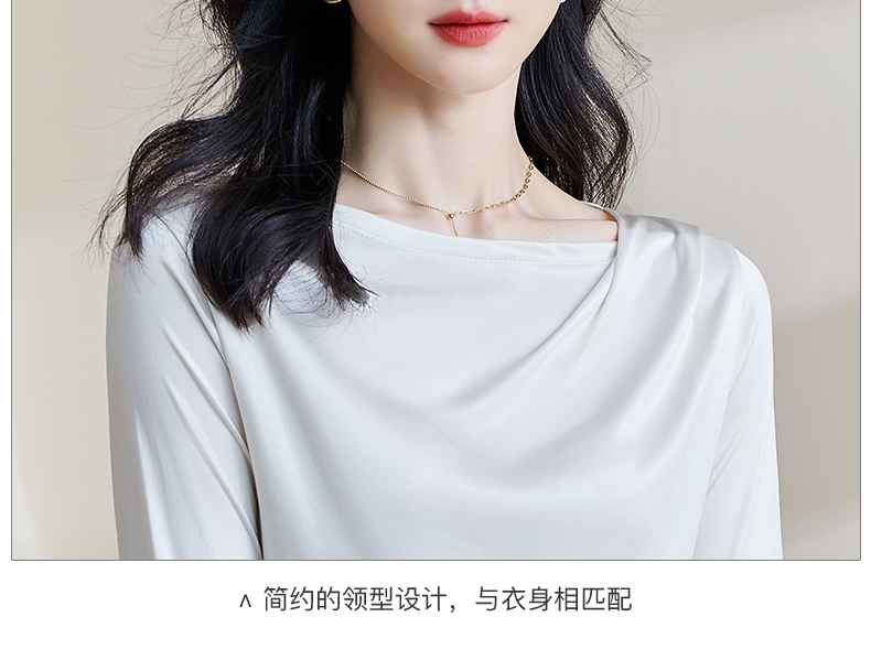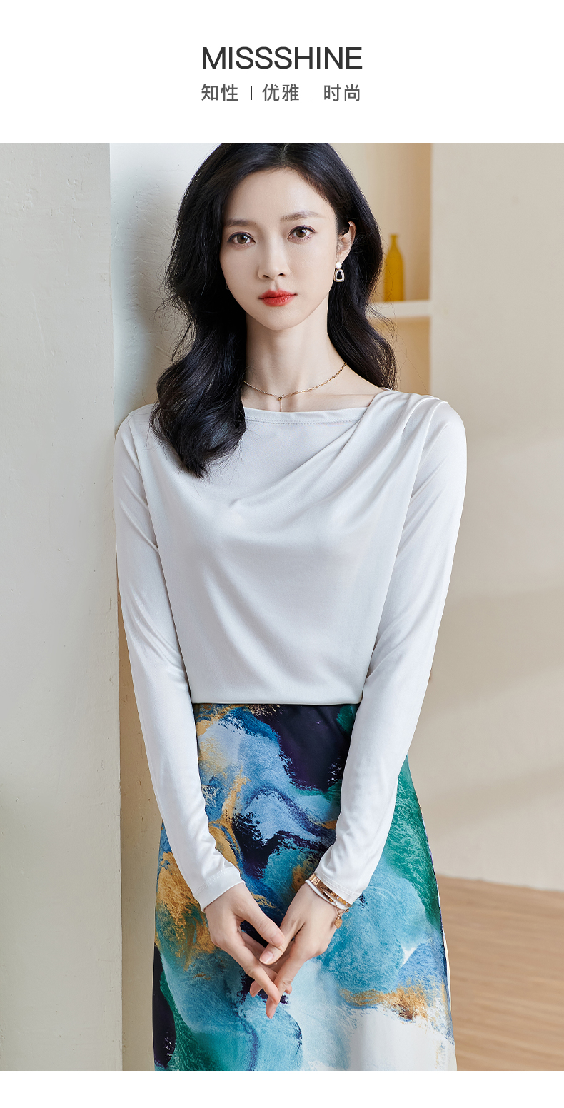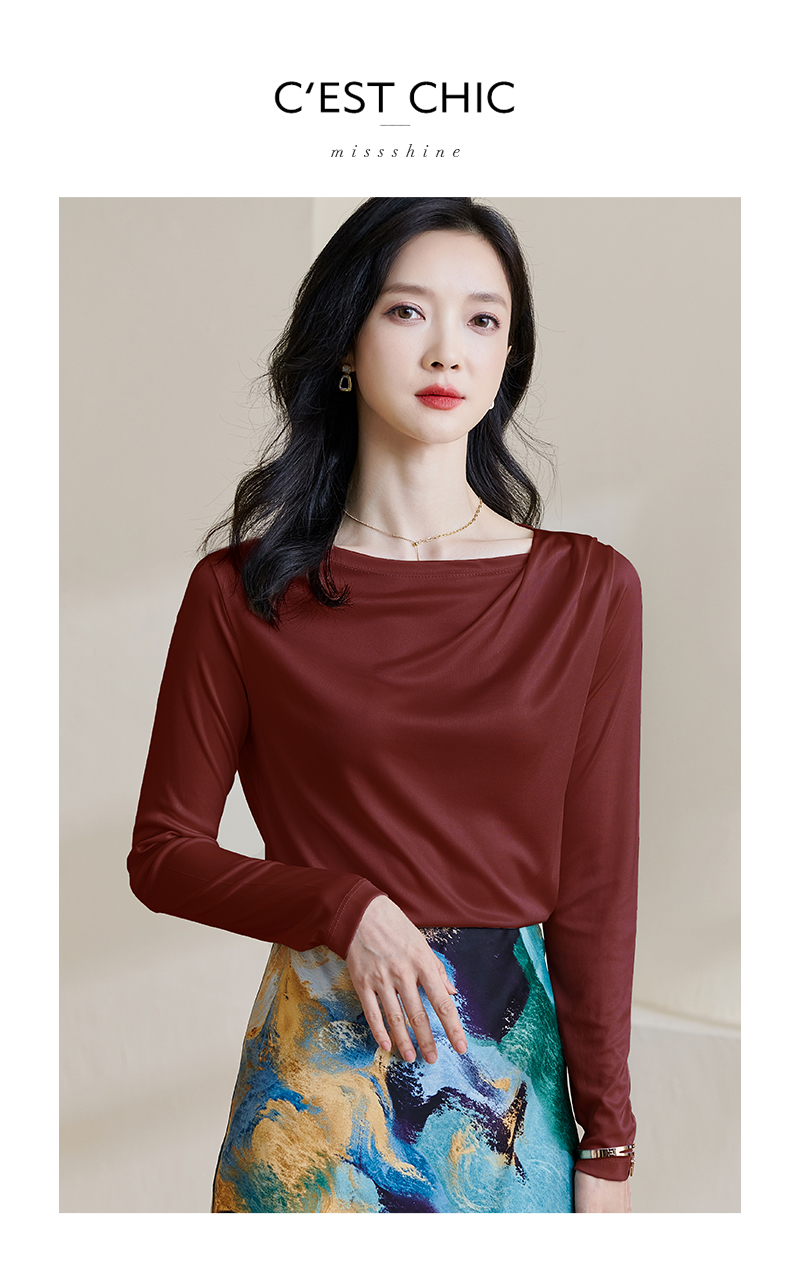 基础款醋酸一字领上衣 米思阳2026春季新款纯色百搭长袖t恤女0913