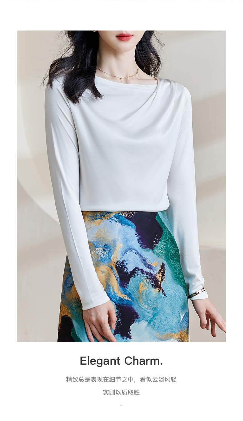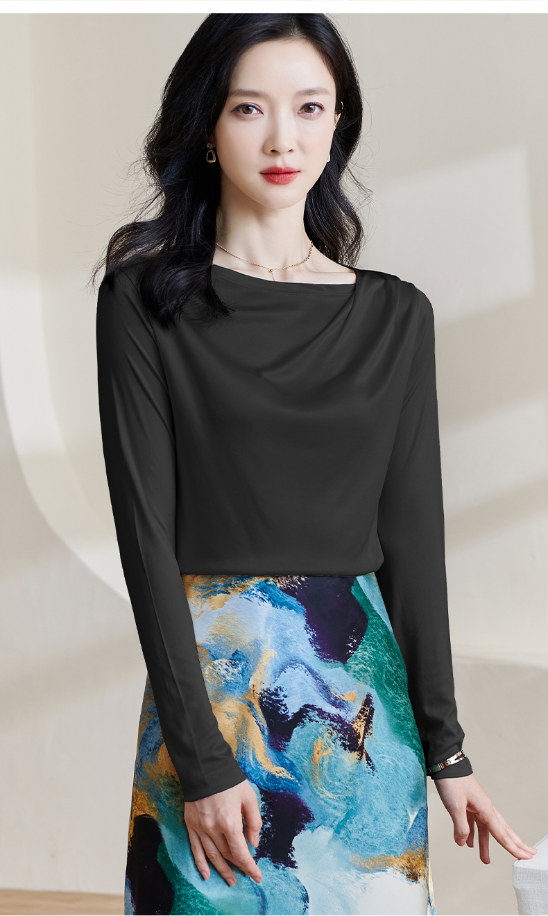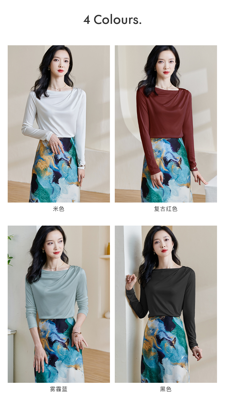基础款醋酸一字领上衣 米思阳2026春季新款纯色百搭长袖t恤女0913