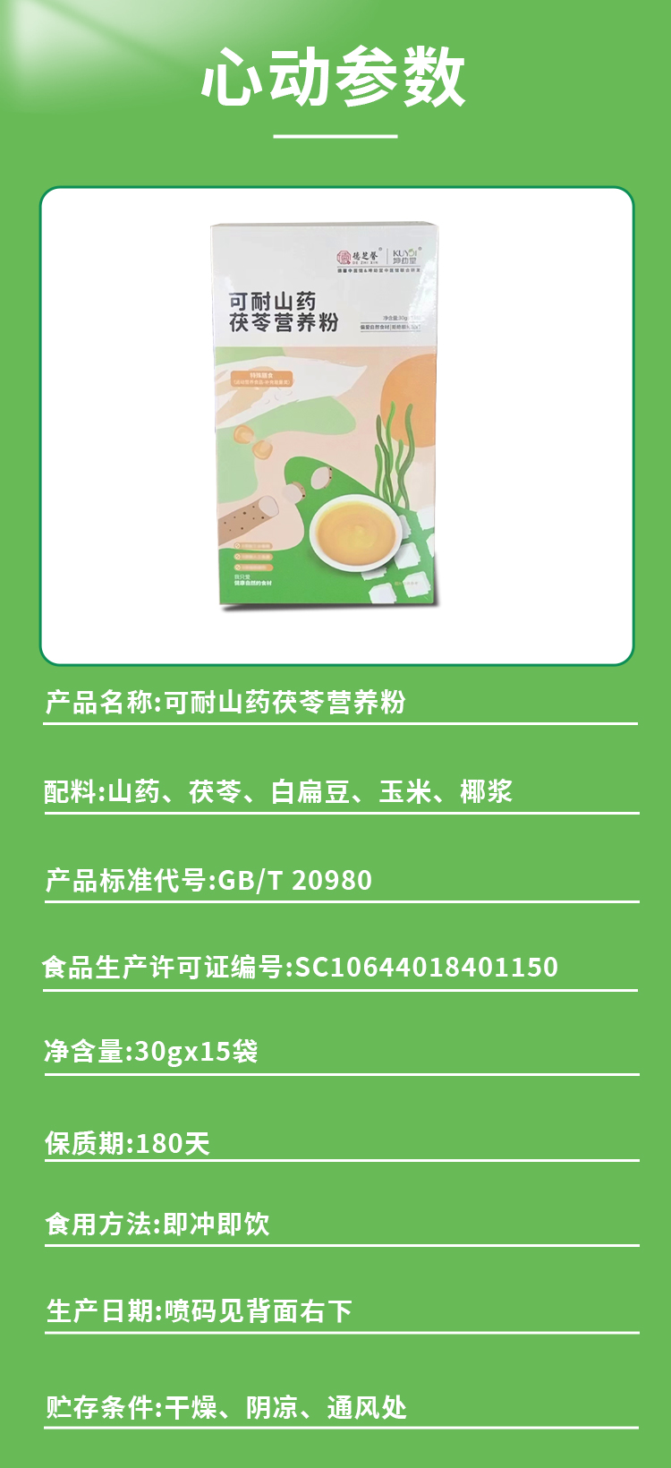可耐山药茯苓营养粉 30gX15