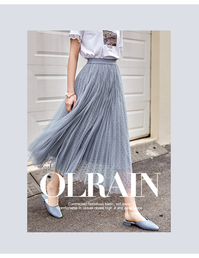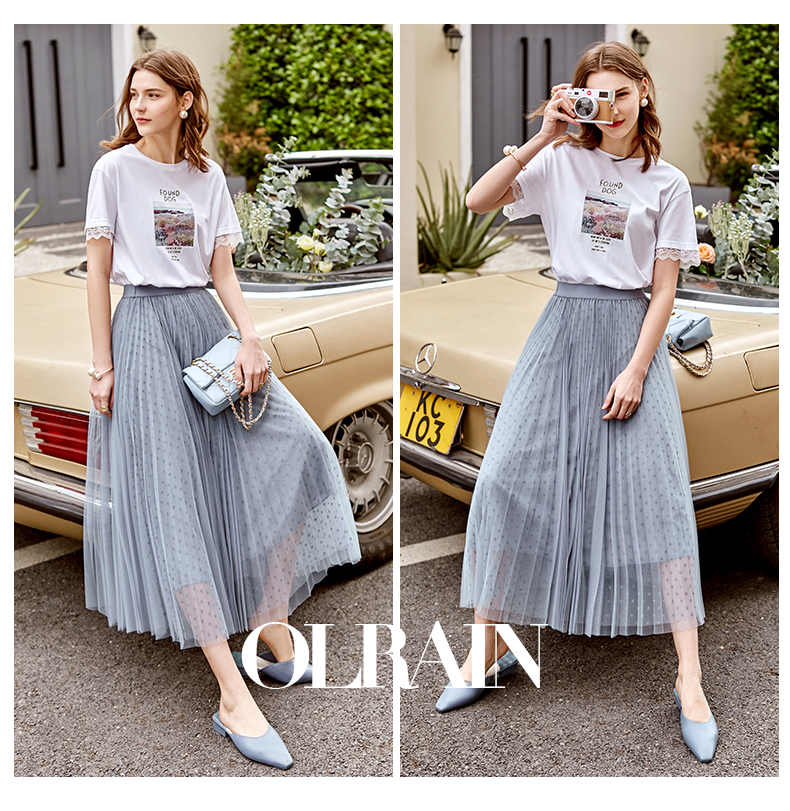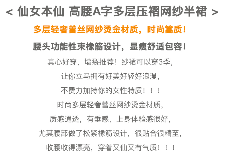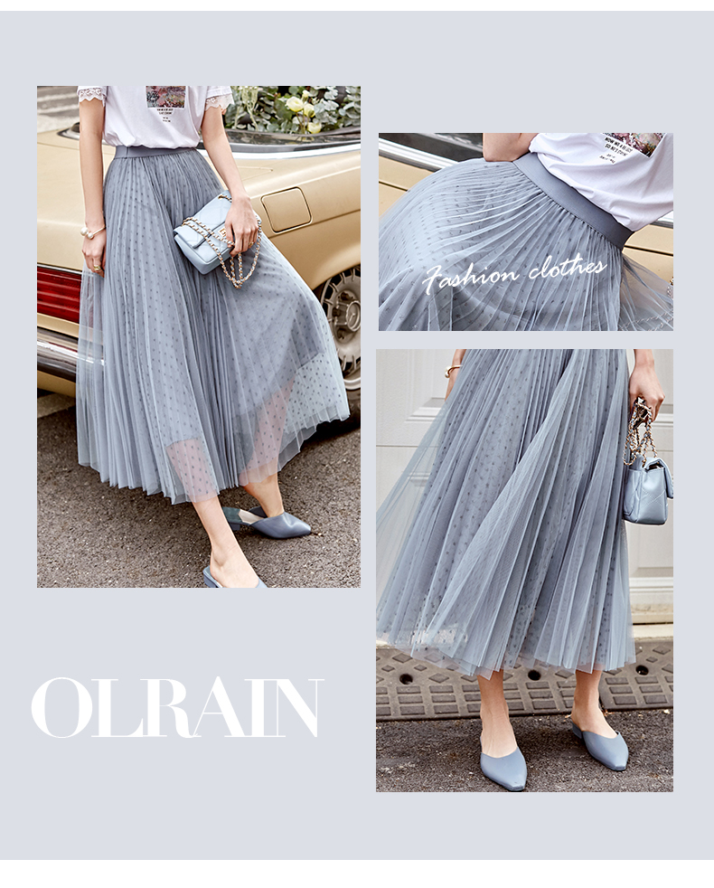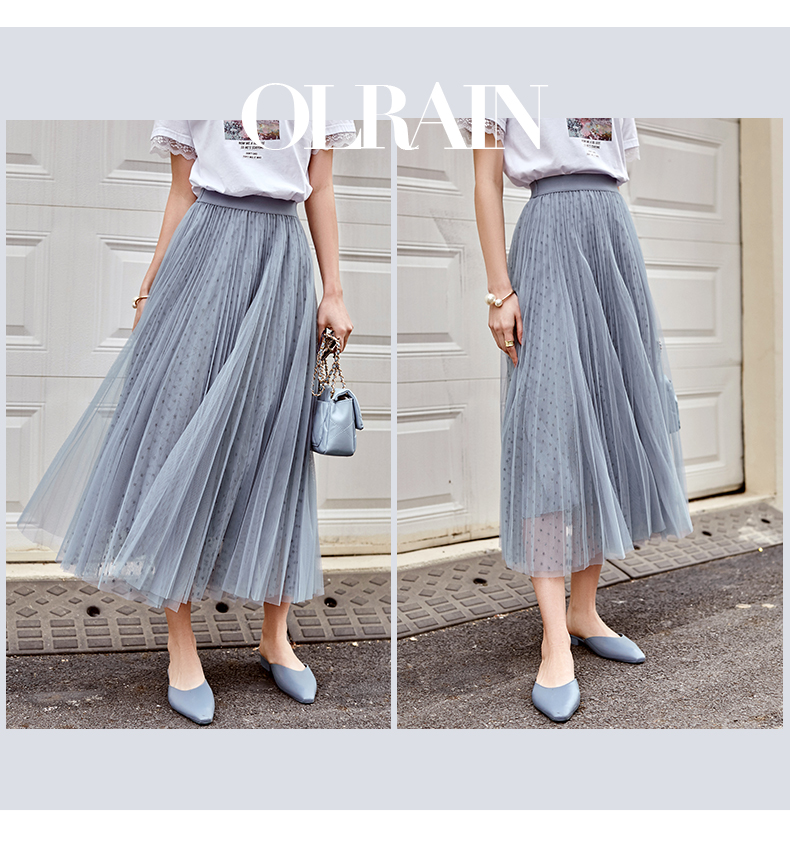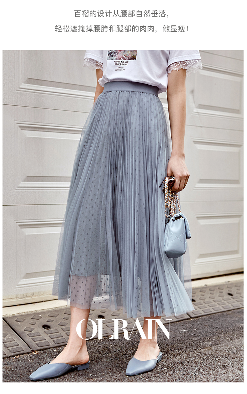 欧芮儿网纱半身裙女2021春夏新款高腰显瘦时尚气质压褶A字仙女裙