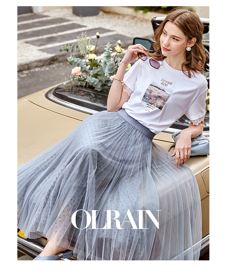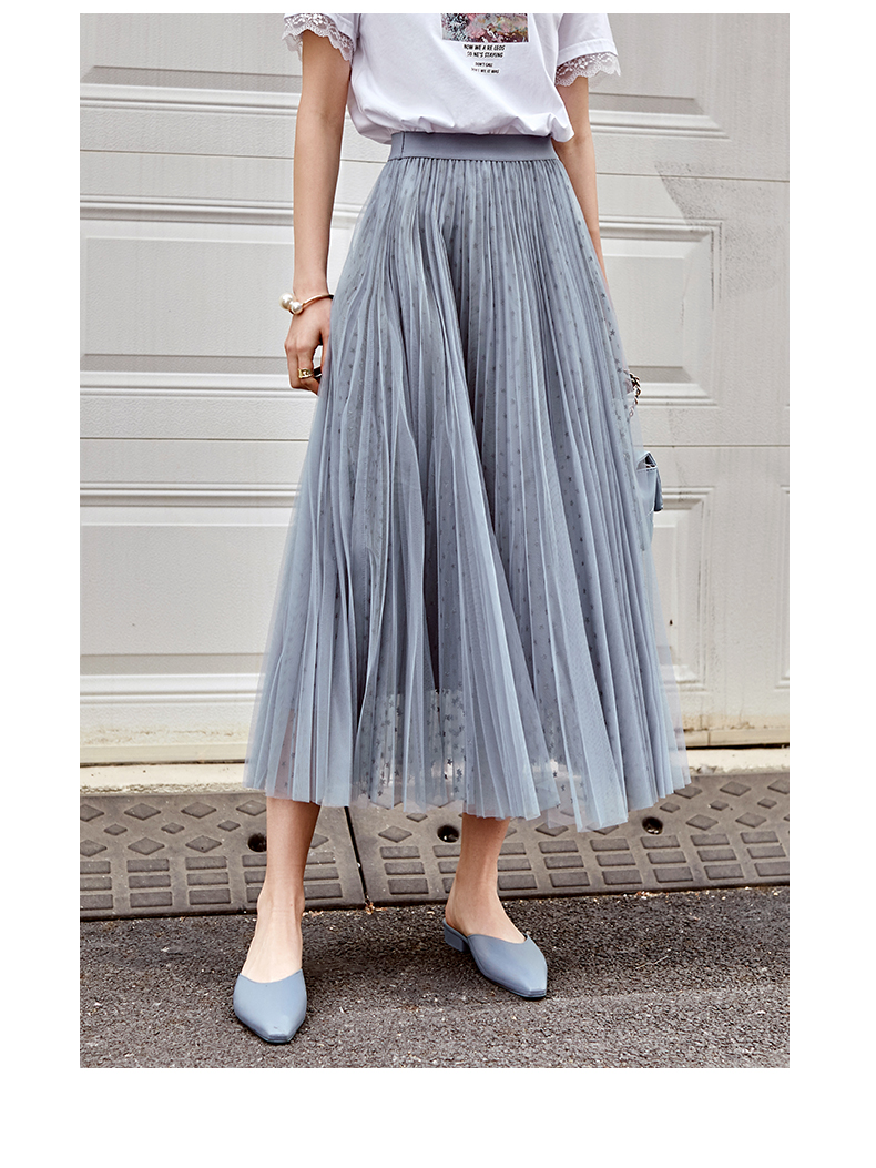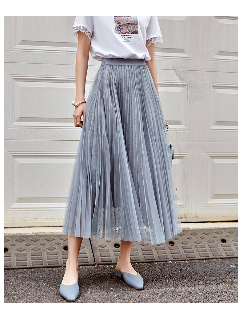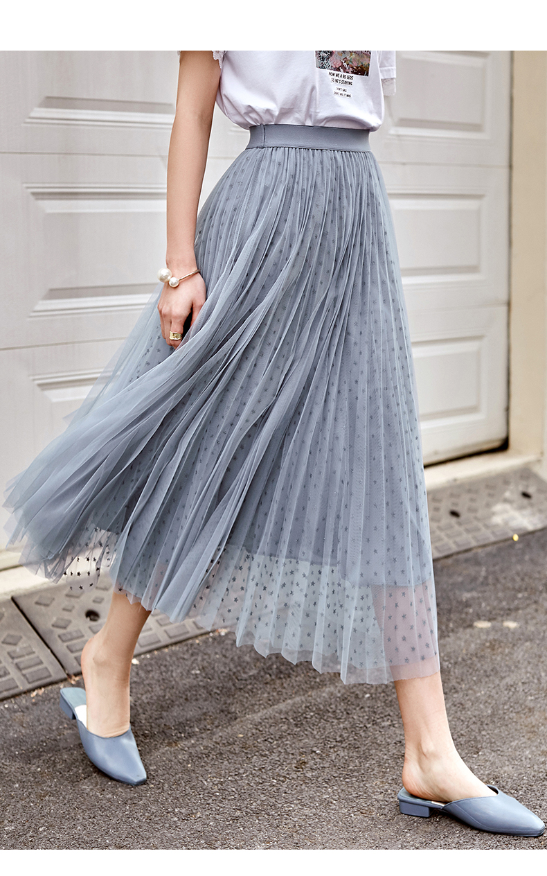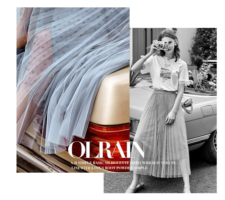欧芮儿网纱半身裙女2021春夏新款高腰显瘦时尚气质压褶A字仙女裙