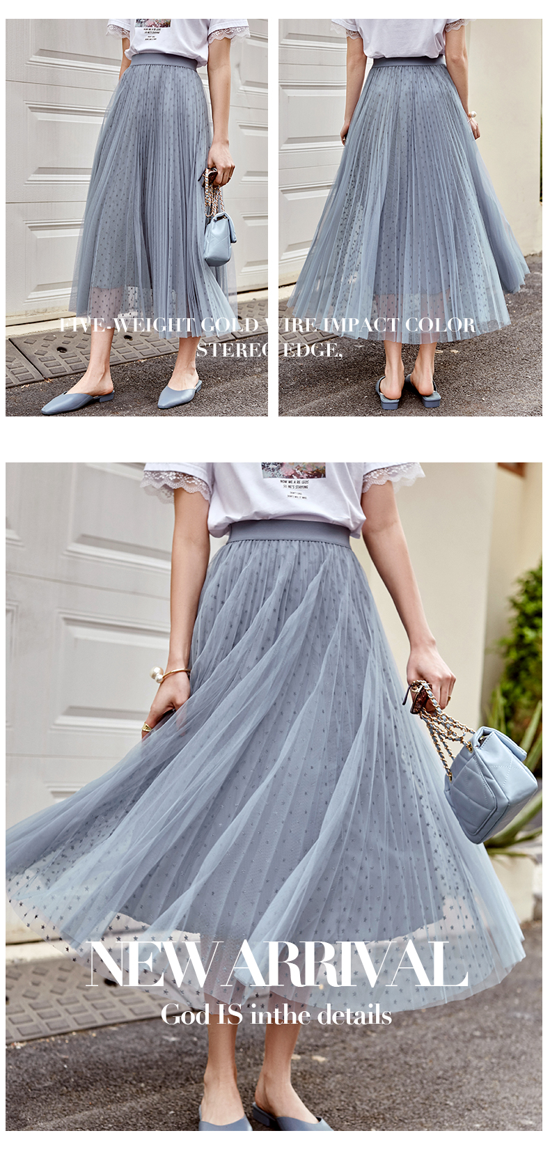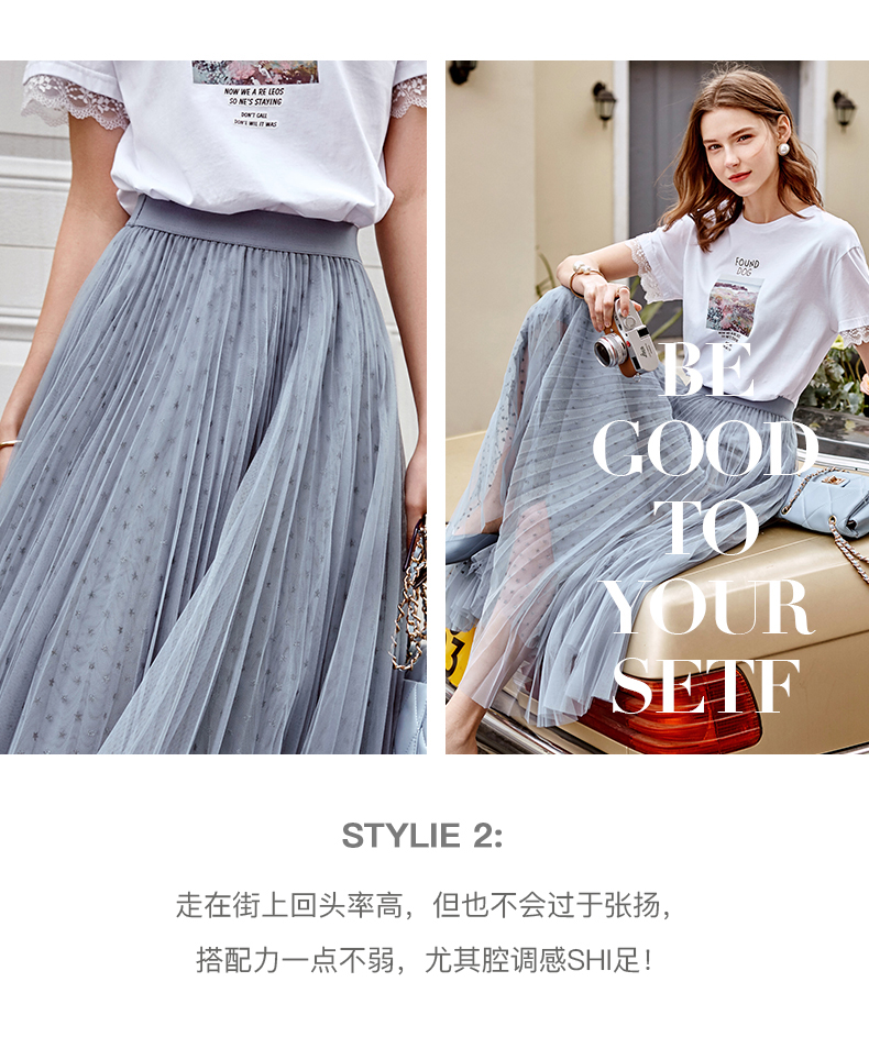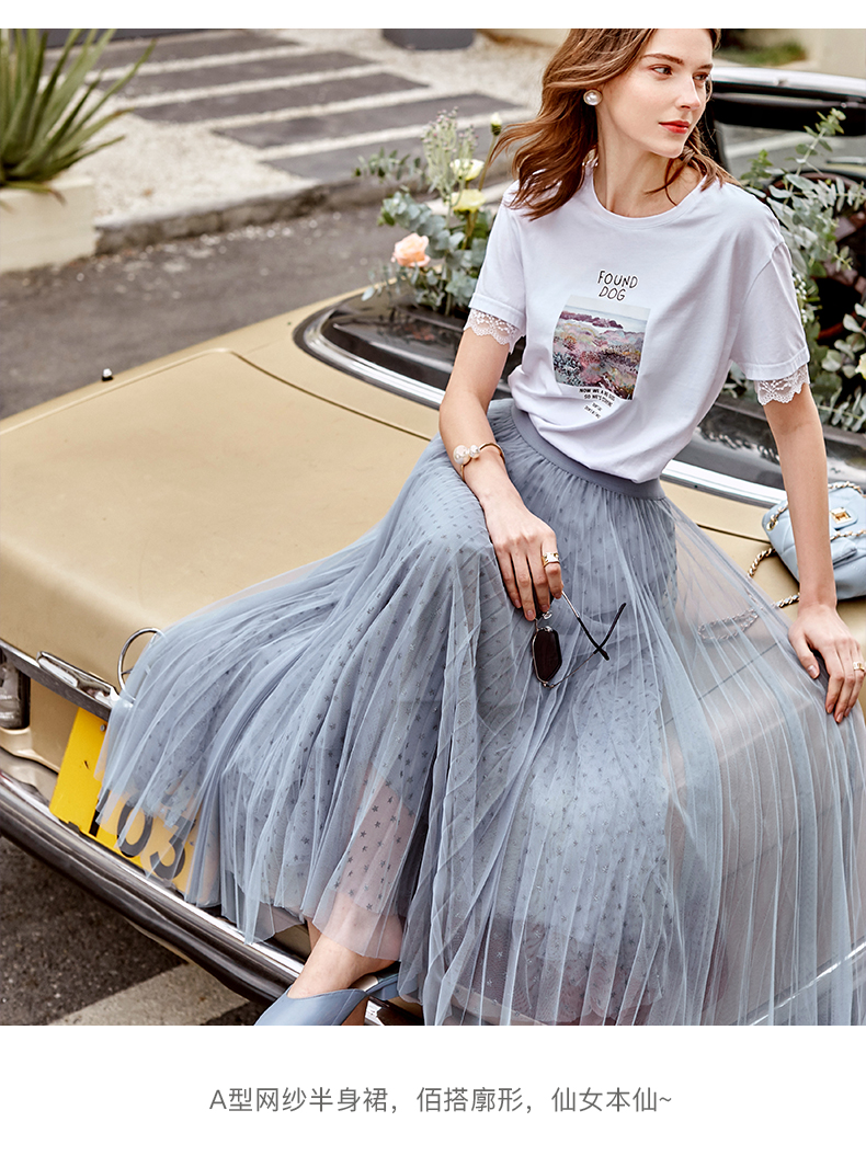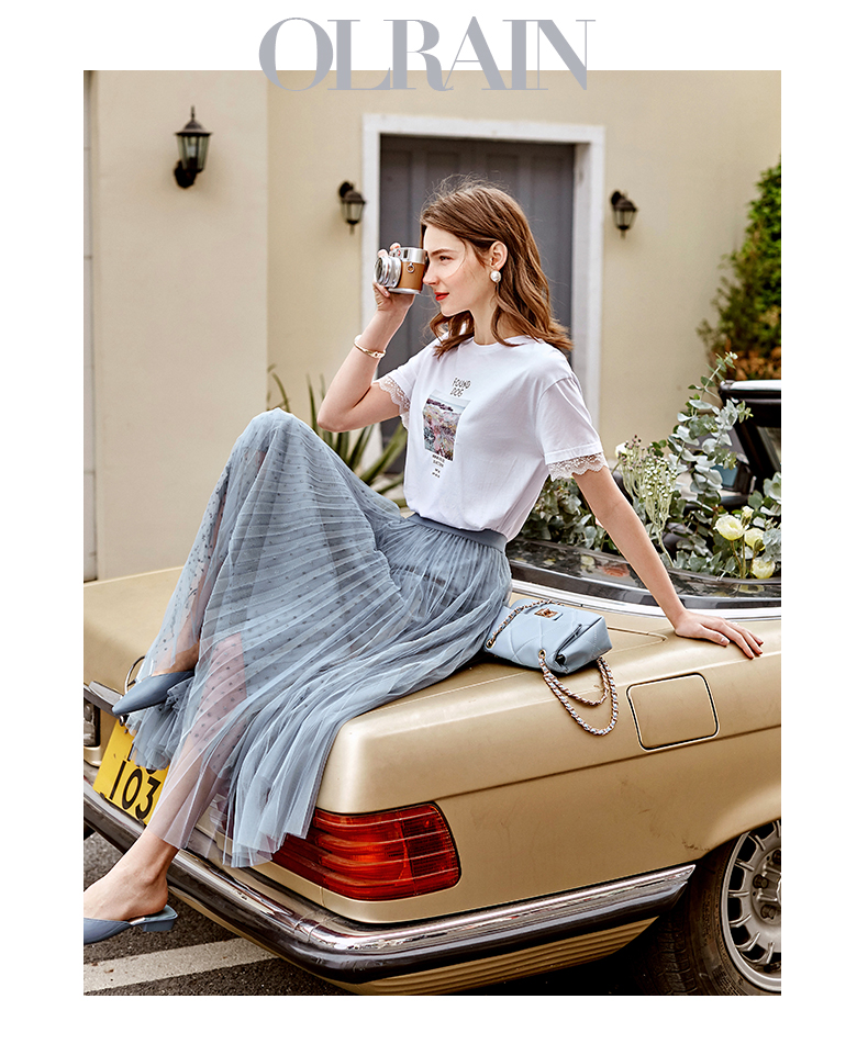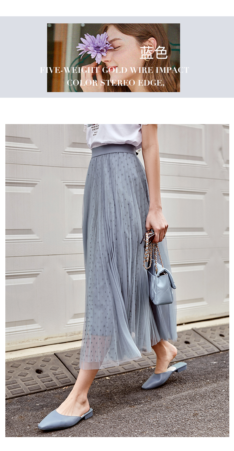 欧芮儿网纱半身裙女2021春夏新款高腰显瘦时尚气质压褶A字仙女裙
