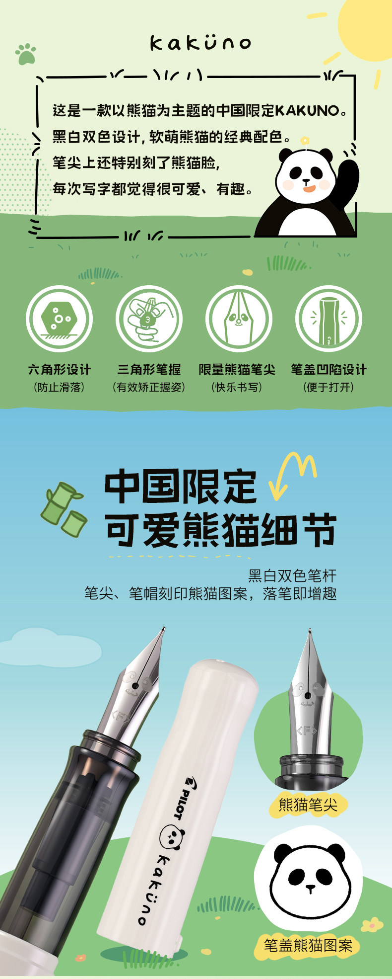 百乐Kakuno熊猫钢笔限定笑脸钢笔