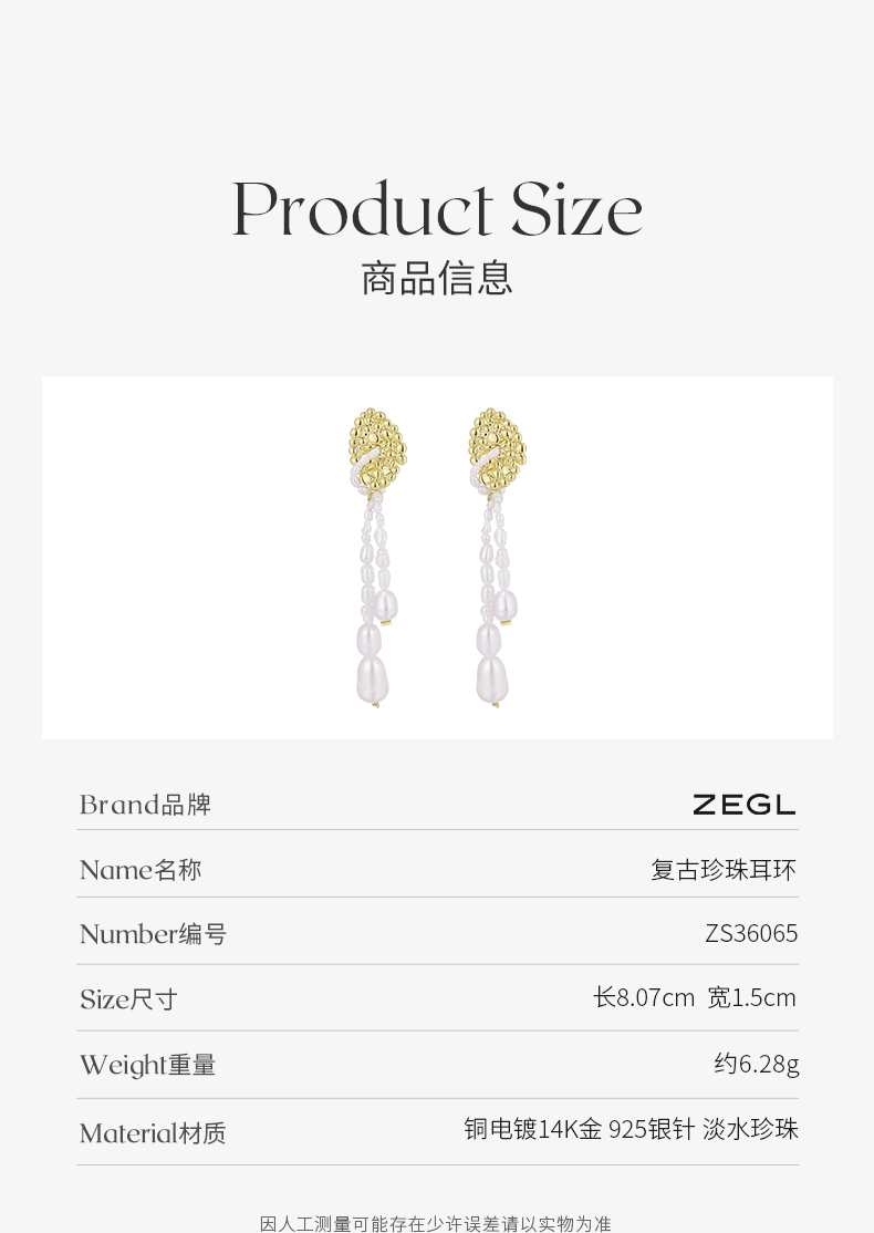 ZEGL复古淡水珍珠耳环女小众设计感高级长款流苏耳钉925银针耳饰