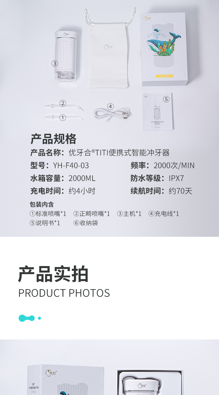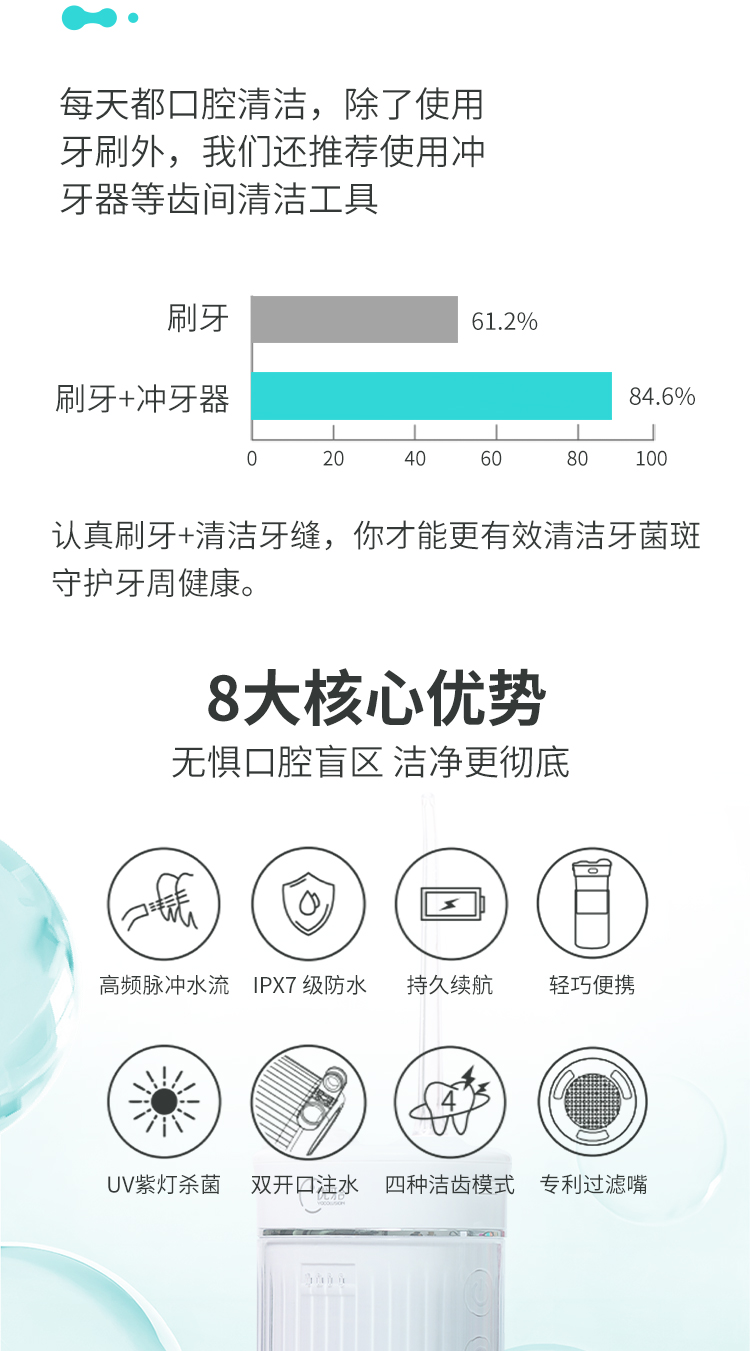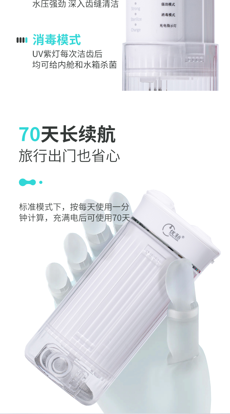 【优牙合】便携式智能冲牙器UV紫外线杀菌清洁牙结石牙垢水牙线