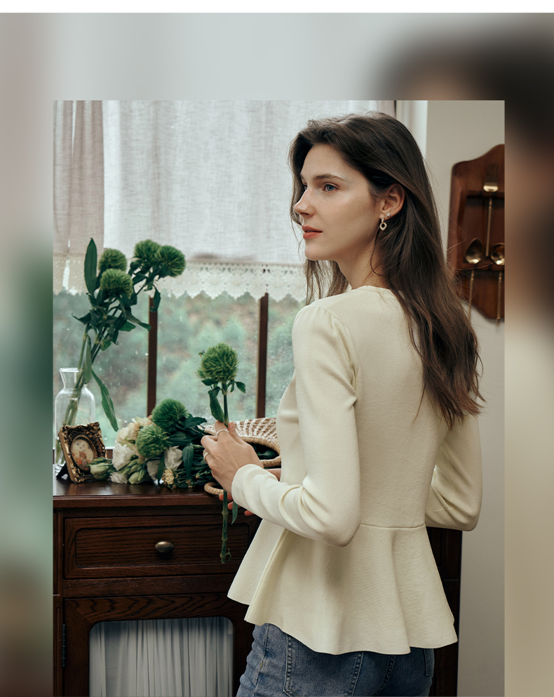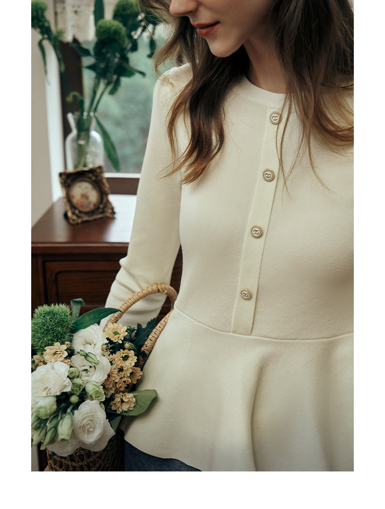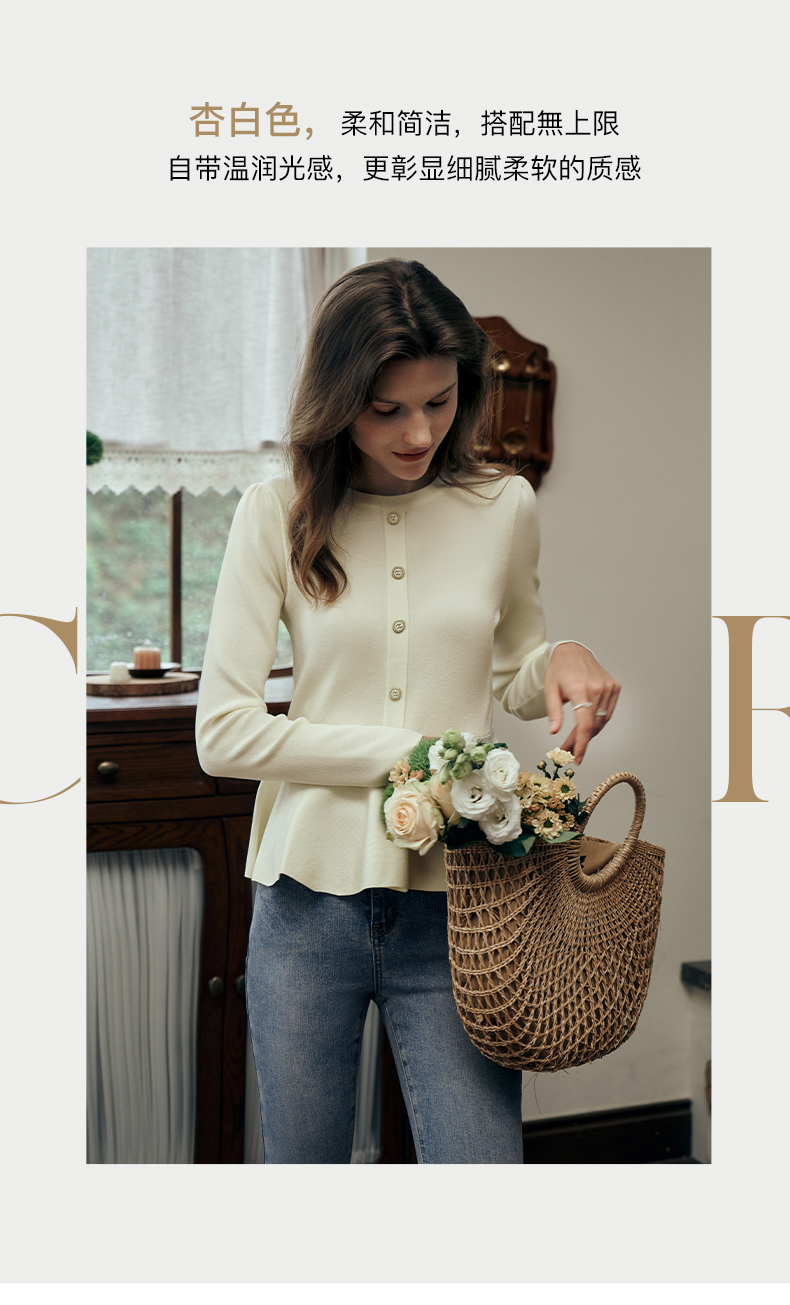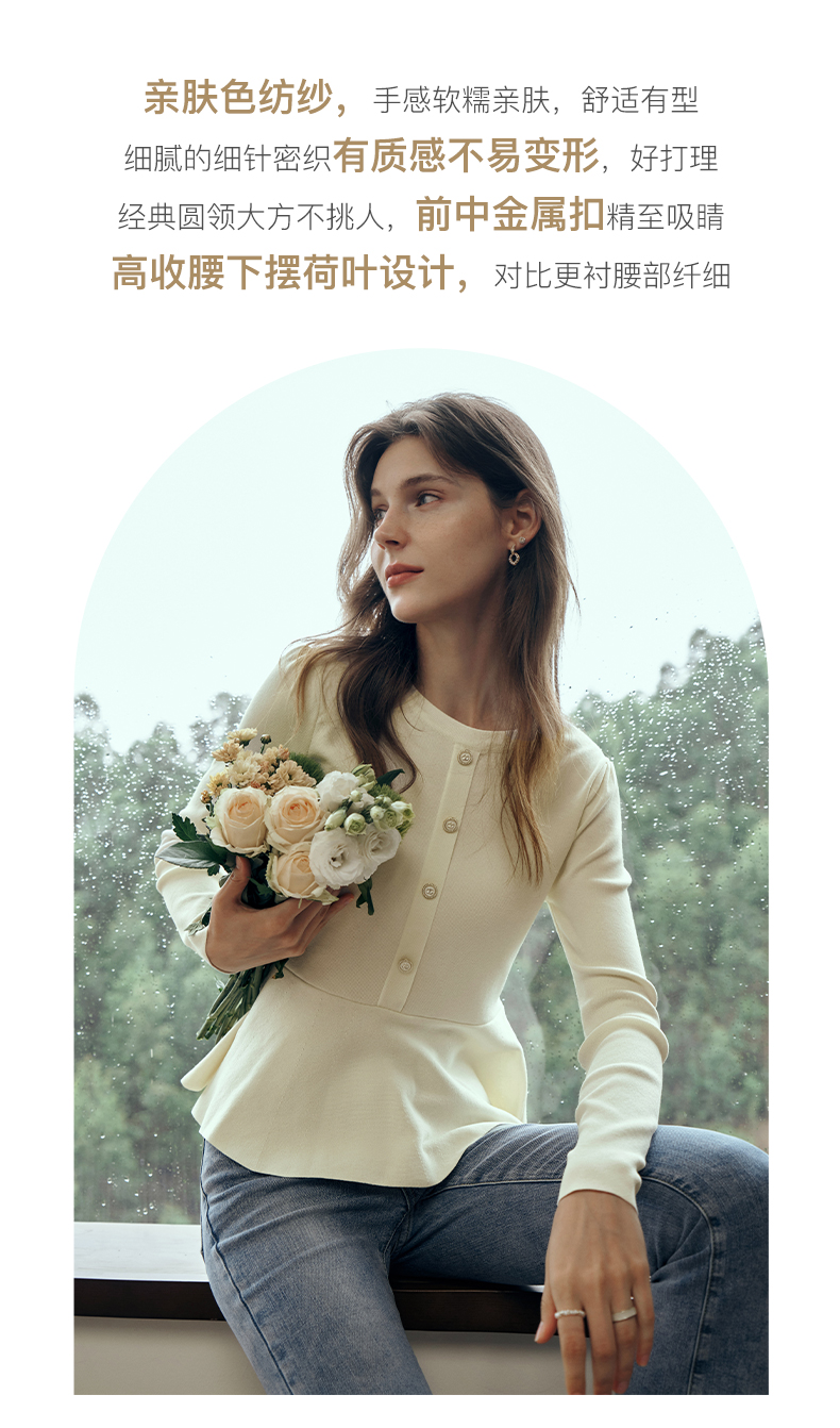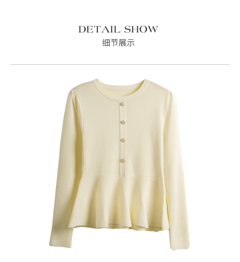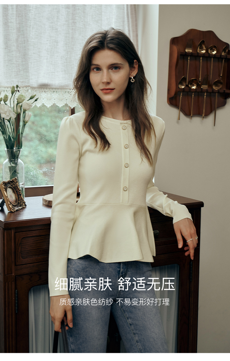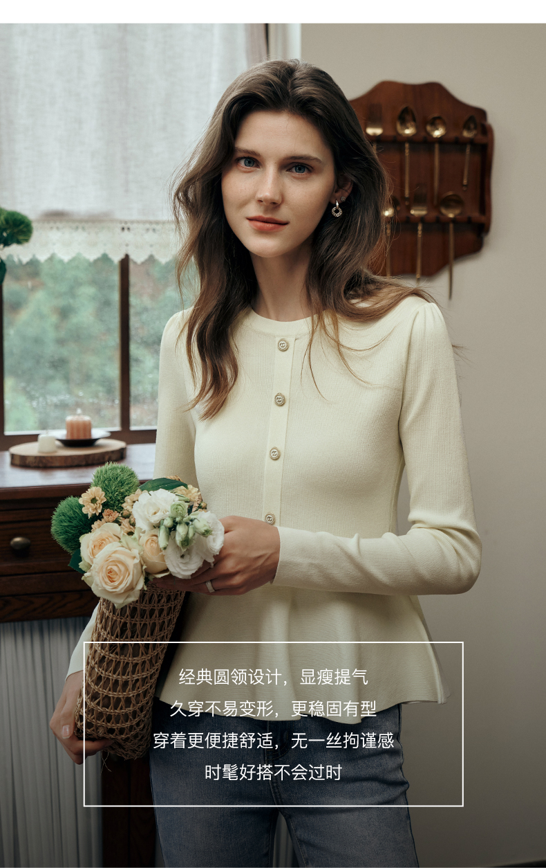 OLrain欧芮儿法式圆领毛衣女初秋2023年新款优雅高收腰毛织套头衫