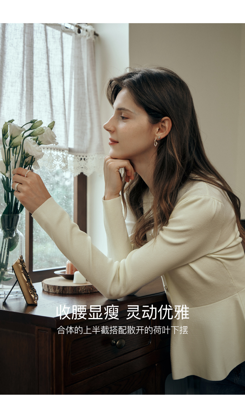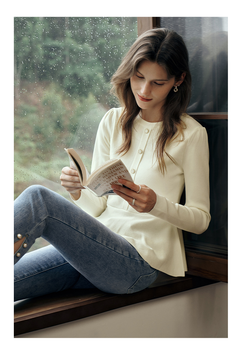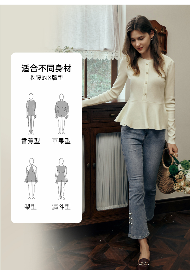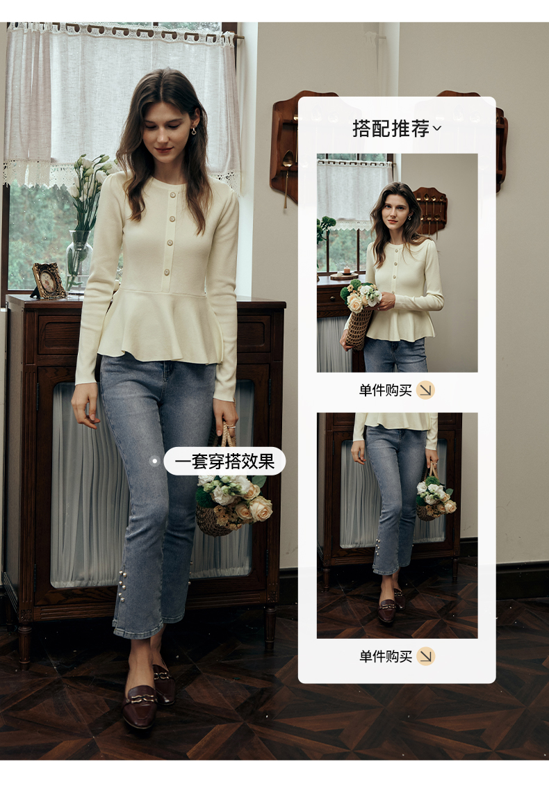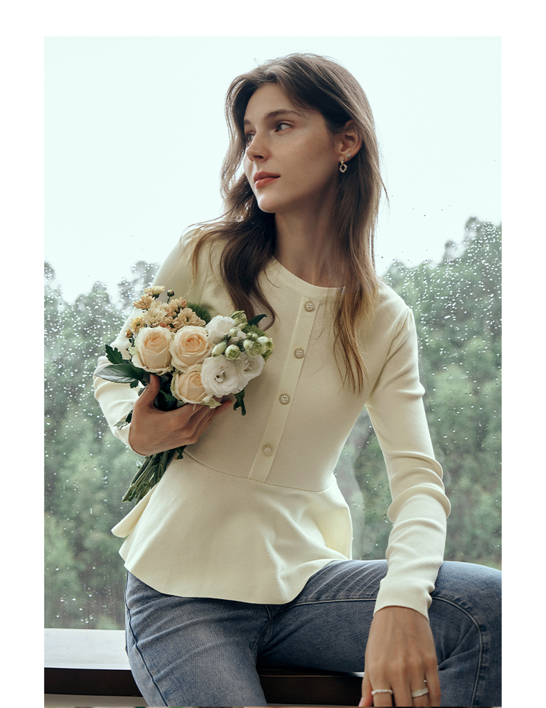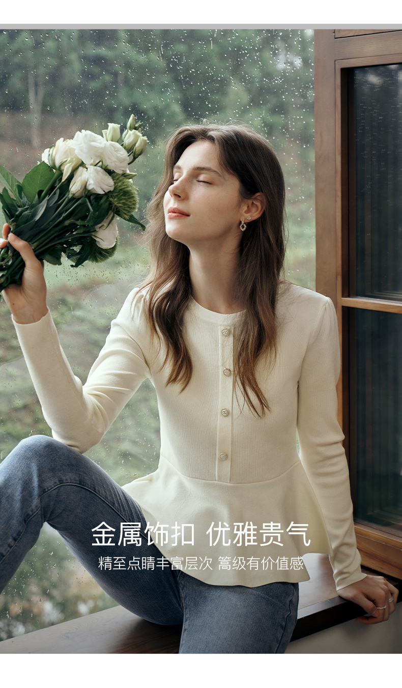 OLrain欧芮儿法式圆领毛衣女初秋2023年新款优雅高收腰毛织套头衫