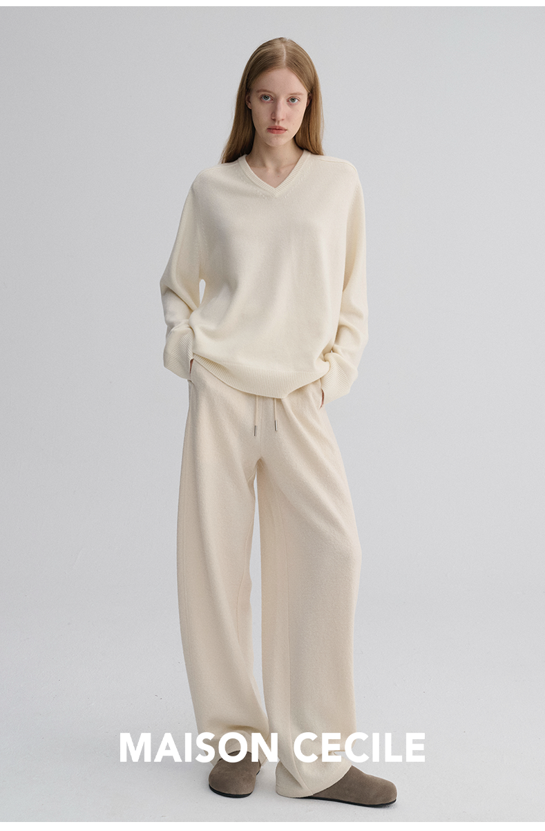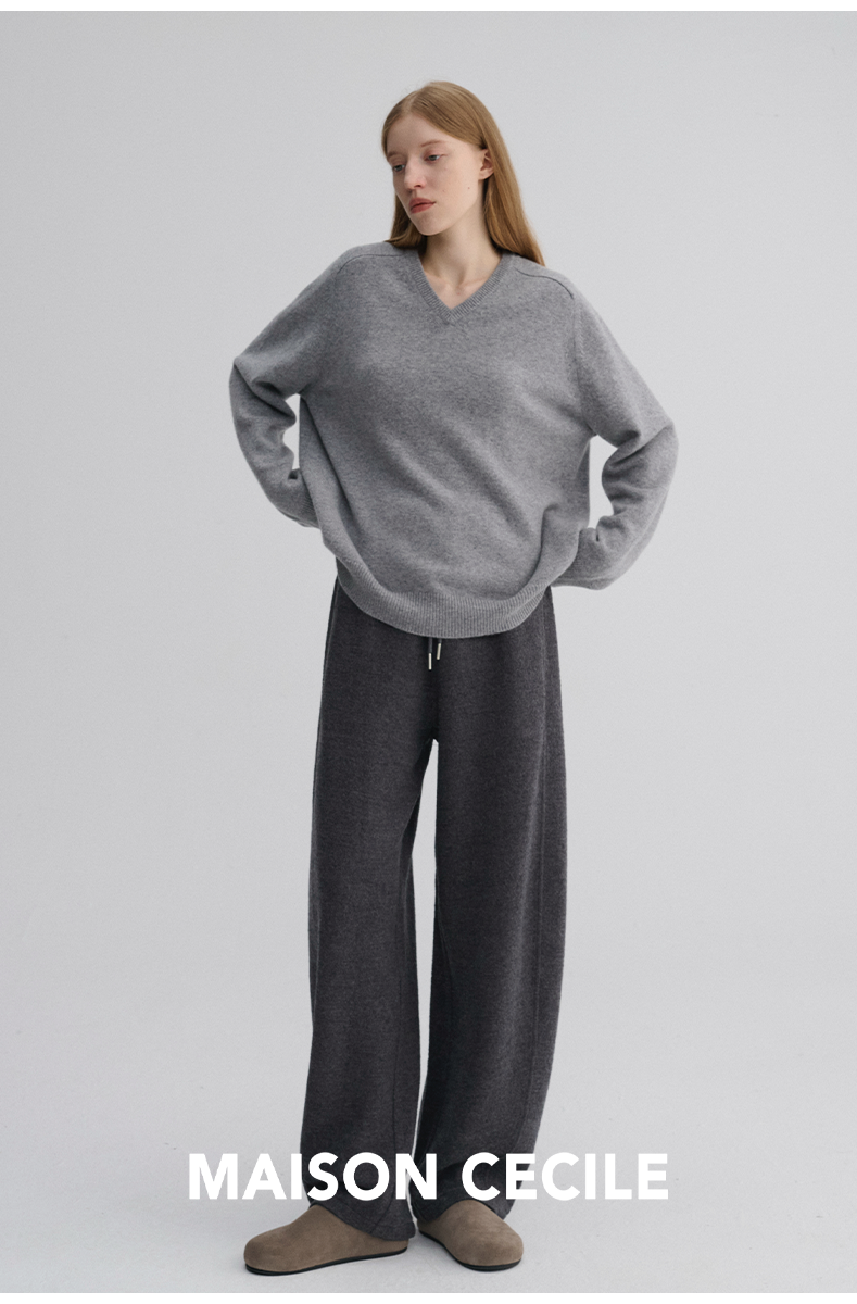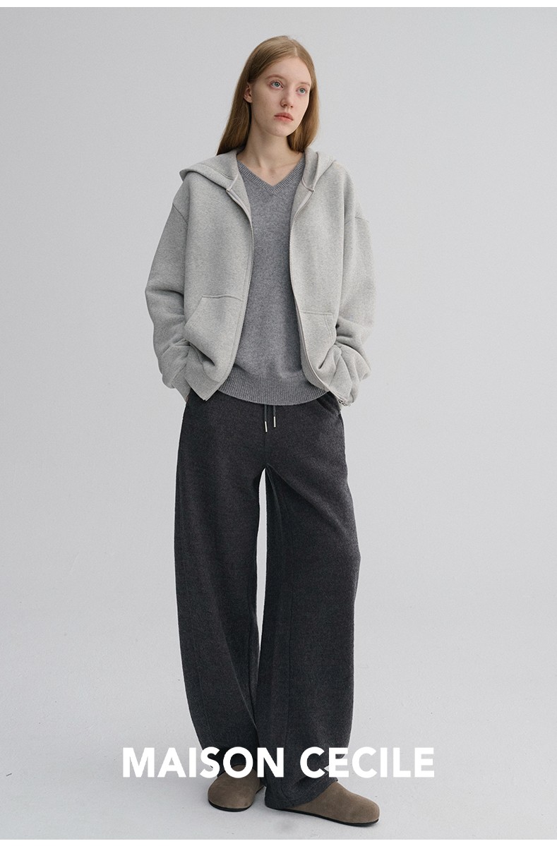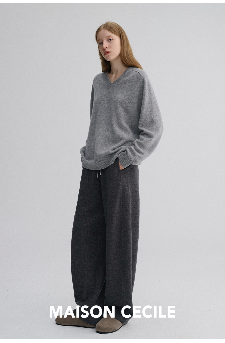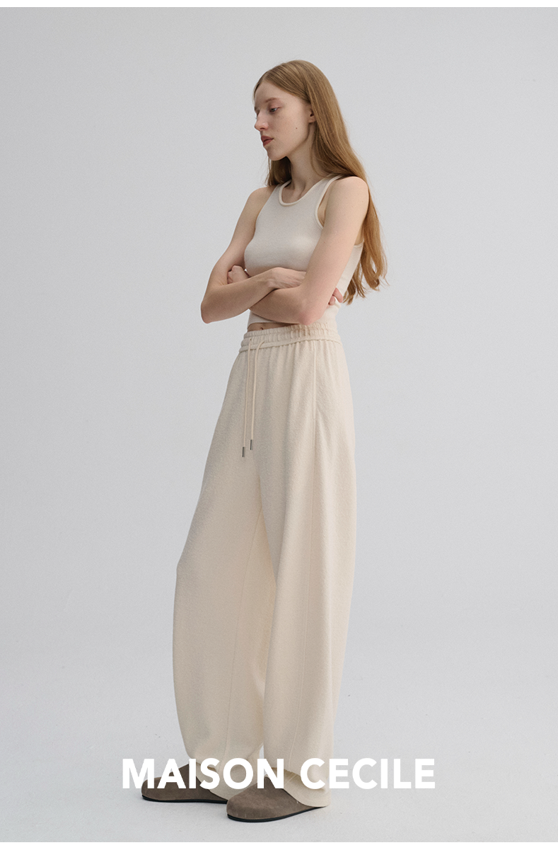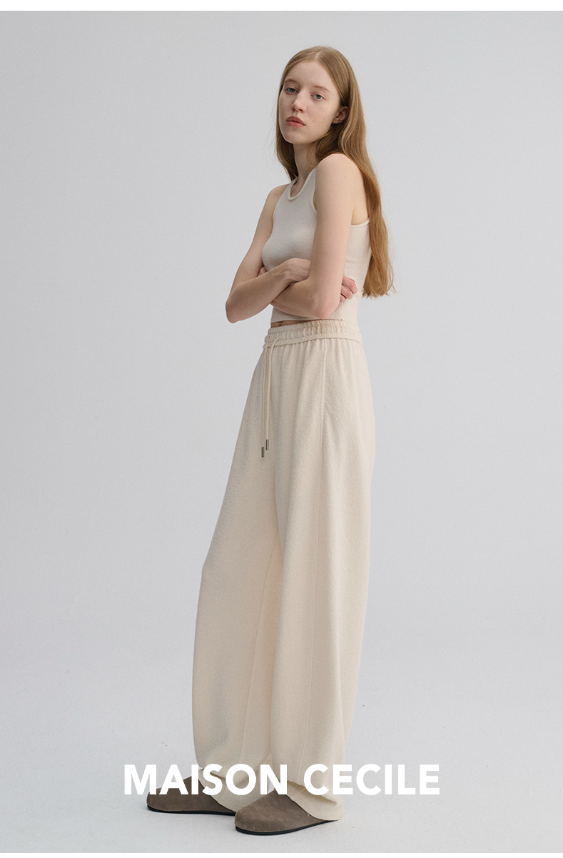 MAISON CECILE 三色/厚版天丝羊毛垂感显瘦抽绳松紧腰弧形弯刀裤