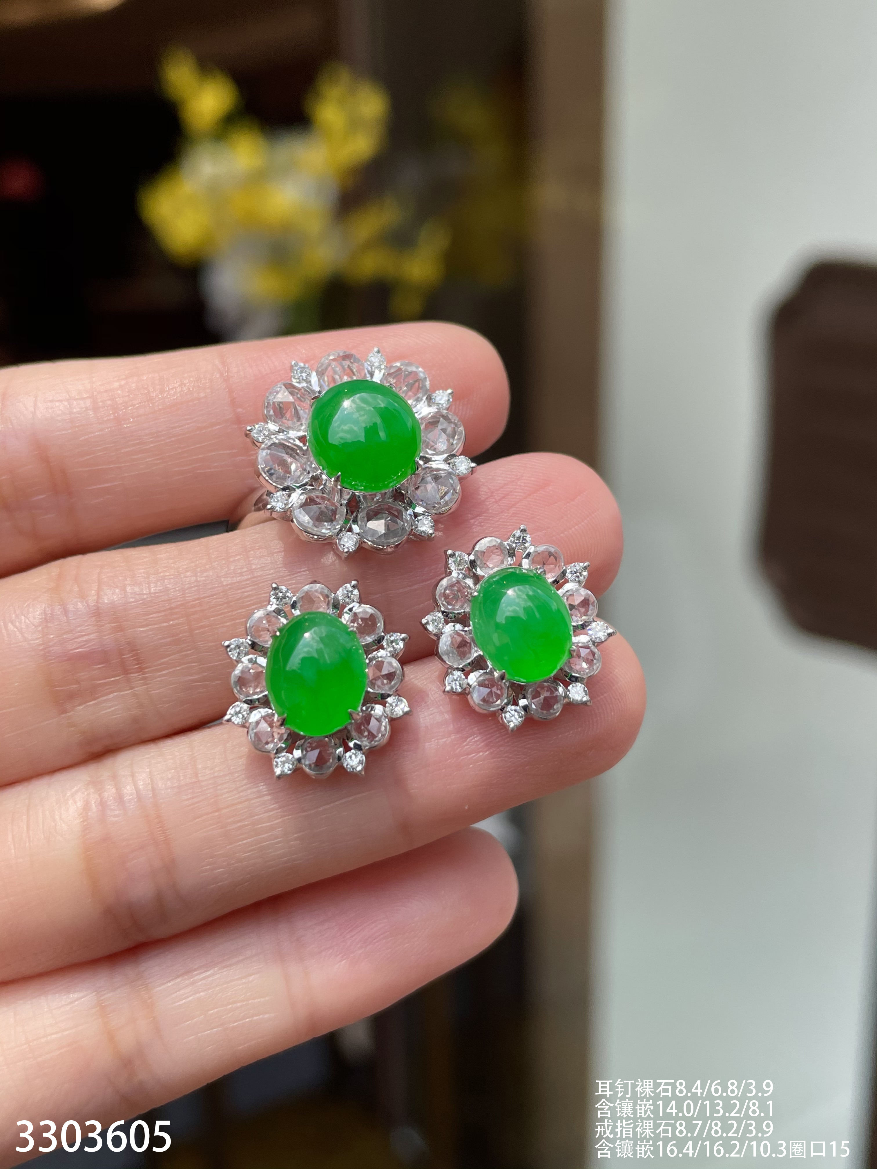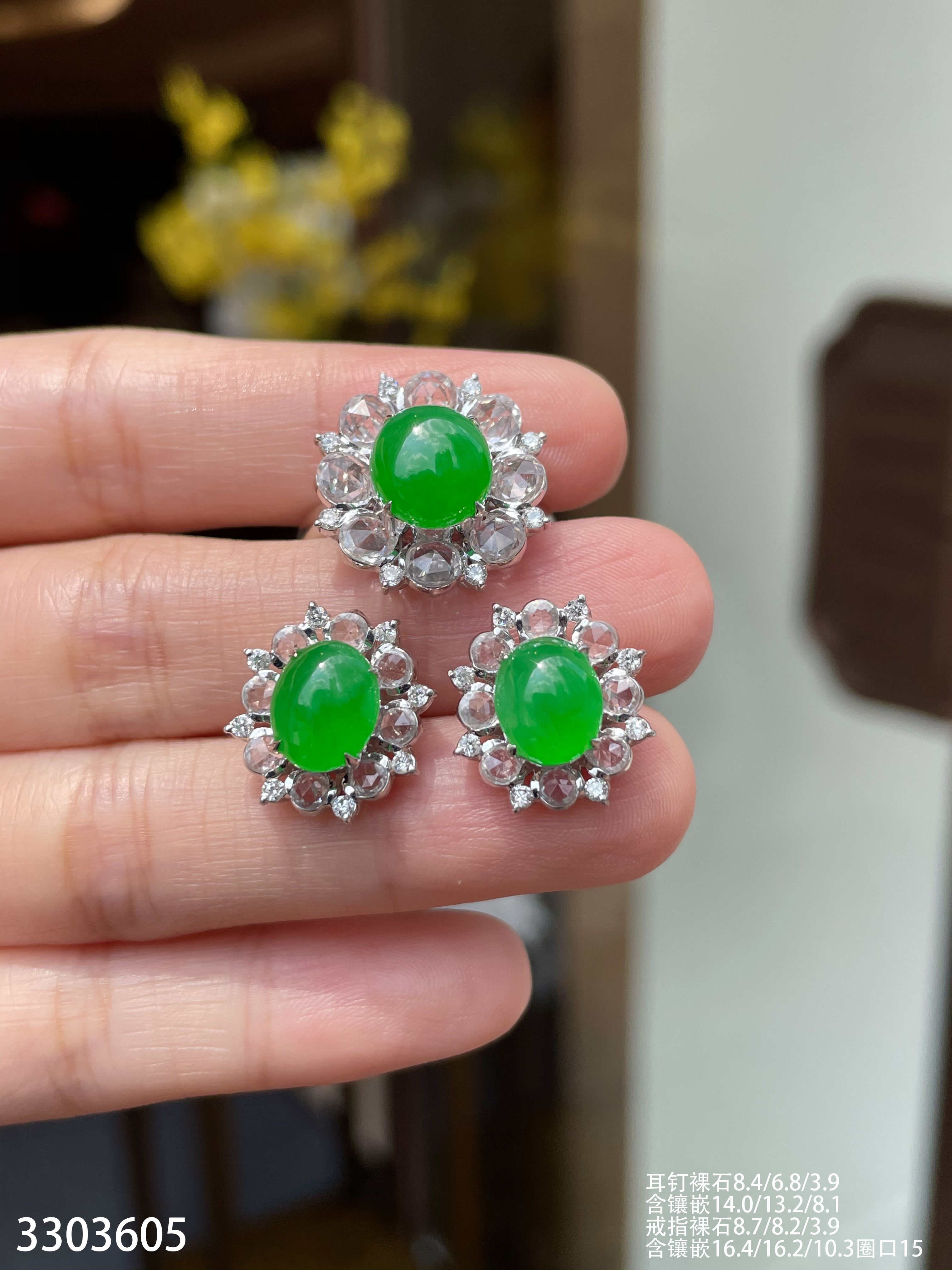 老坑高冰艳绿蛋面套装 78999【3303605】