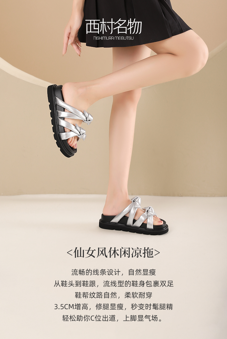 西村名物2024夏季新款仙女风休闲凉拖外穿厚底一字带凉鞋女X24BJ20391