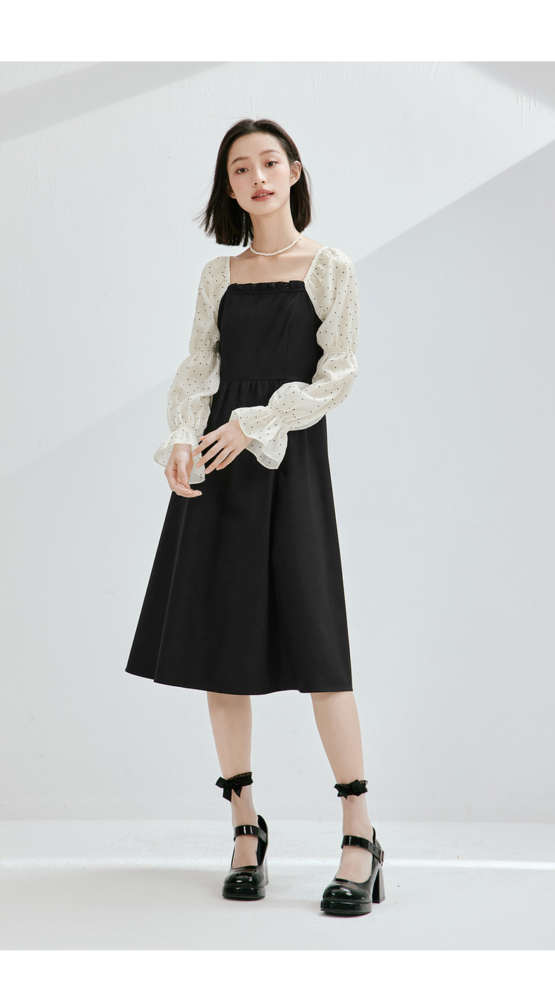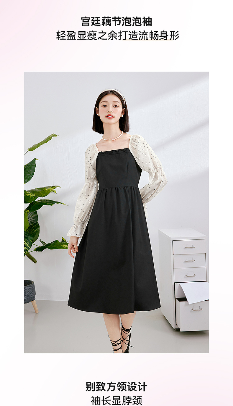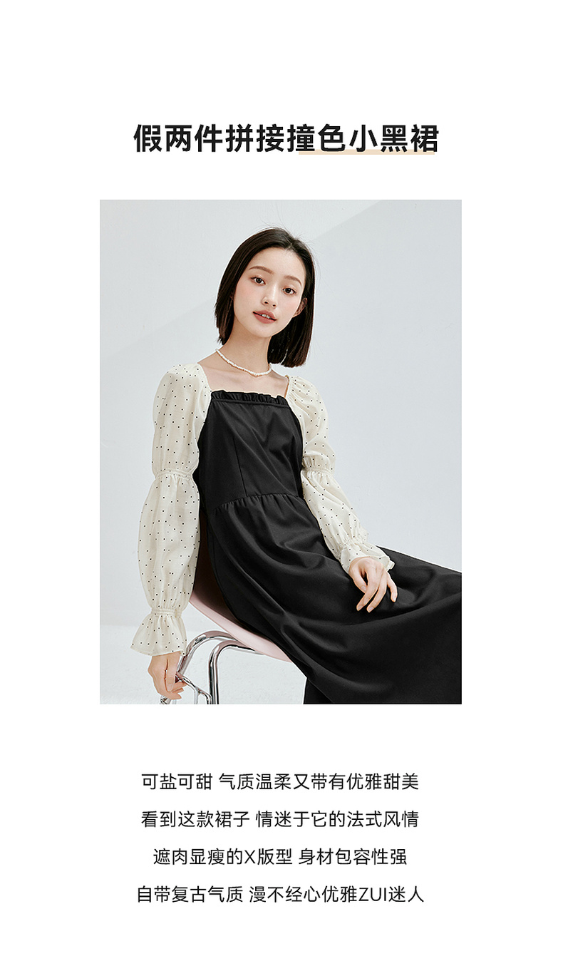 【严选】诗凡黎假两件拼接撞色连衣裙7E3190601