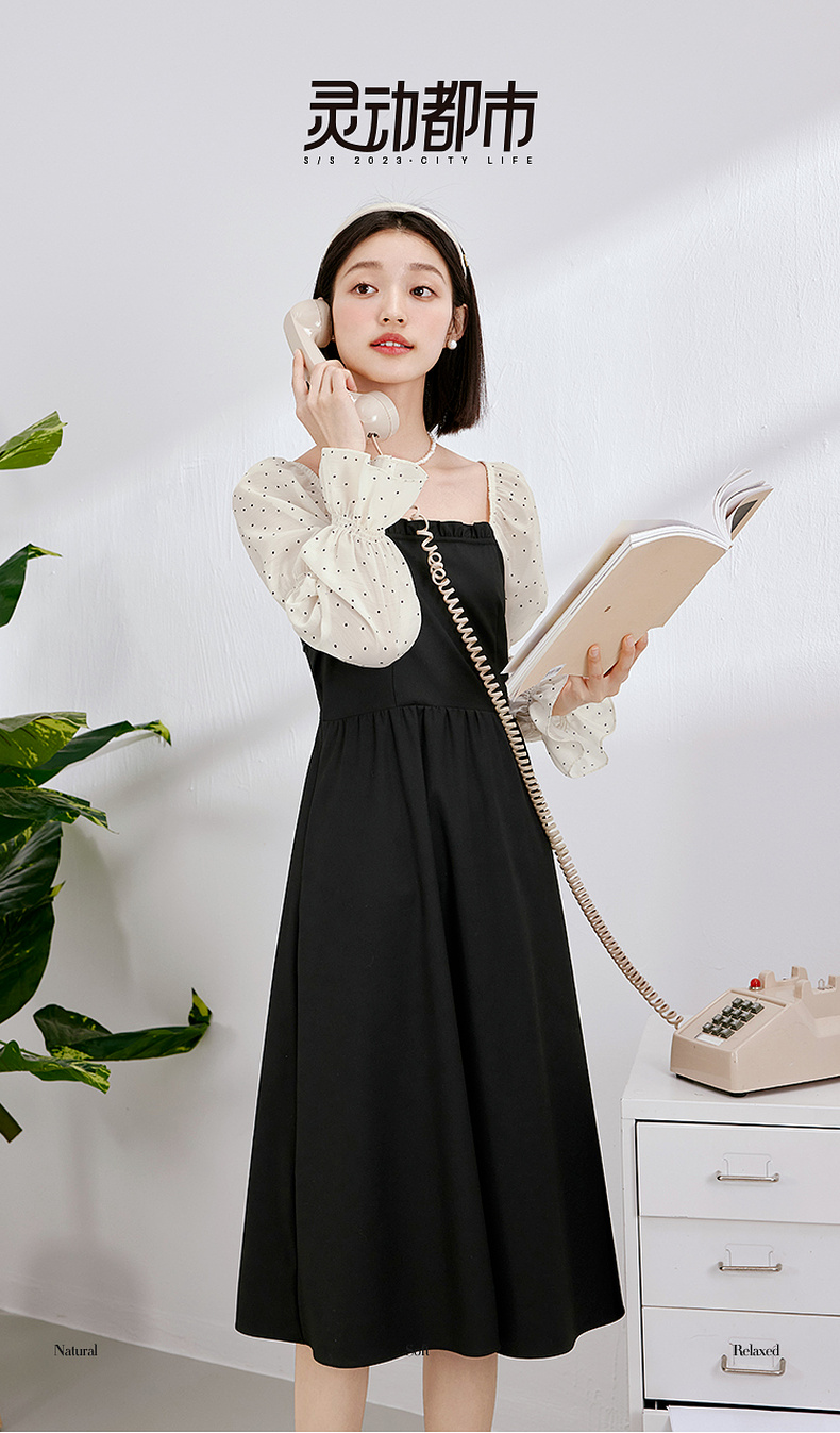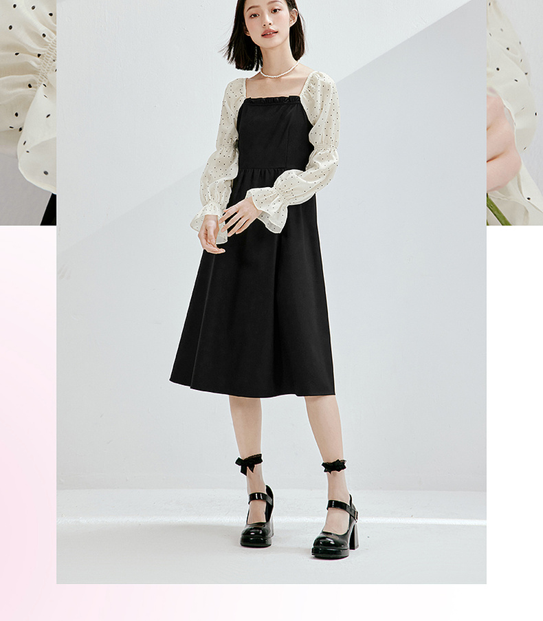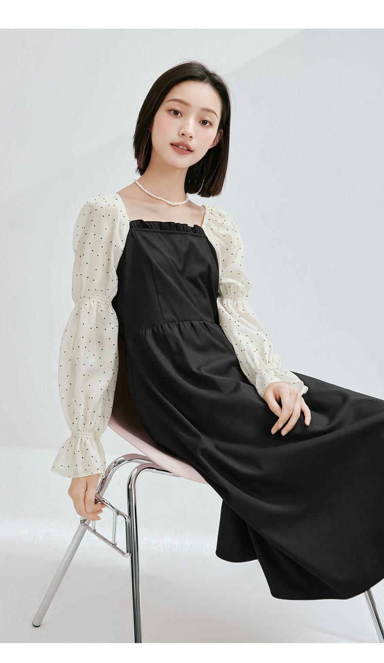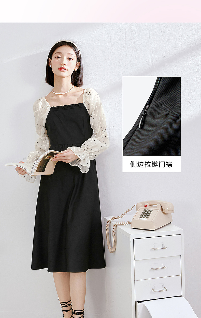 【严选】诗凡黎假两件拼接撞色连衣裙7E3190601