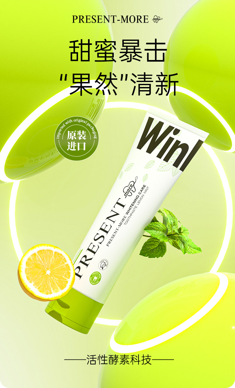 Present-More普斯特 莹白护理牙膏130g(青柠薄荷)