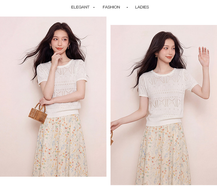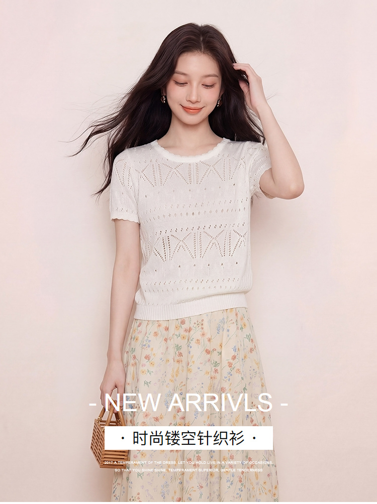 奢姿大码女装2026夏季减龄镂空设计圆领针织衫胖妹妹百搭时尚上衣9862692293