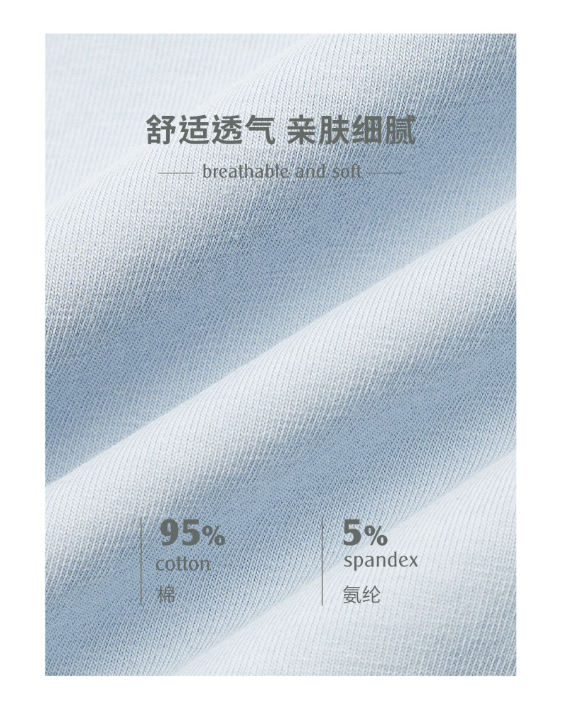 材质成分: 棉95% 聚氨酯弹性纤维(氨纶)5%