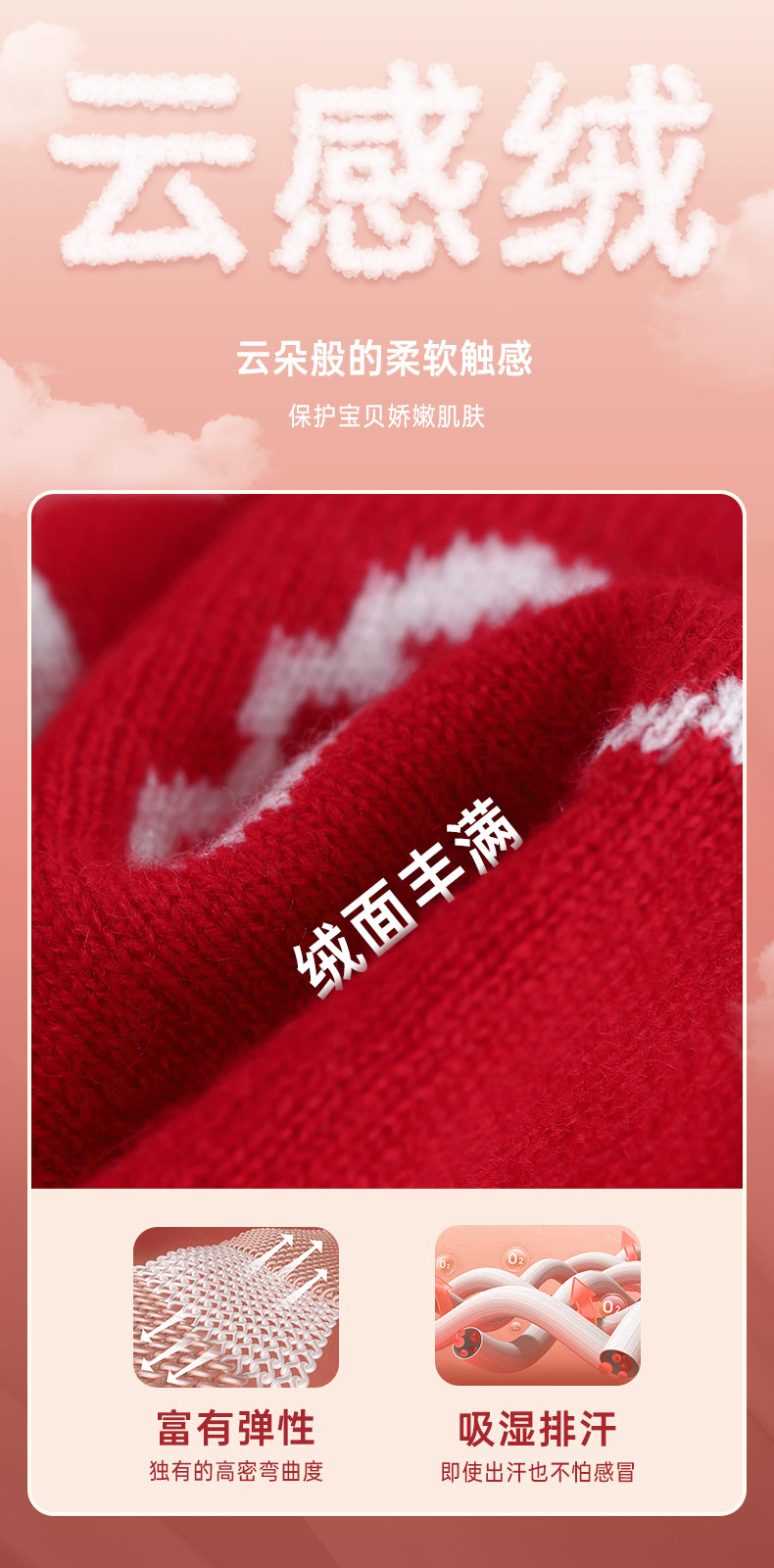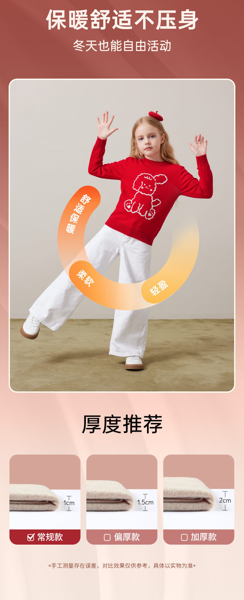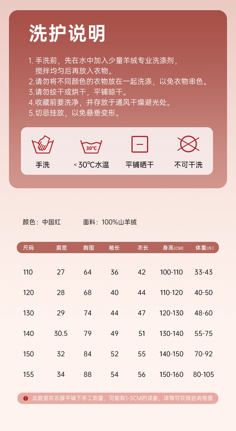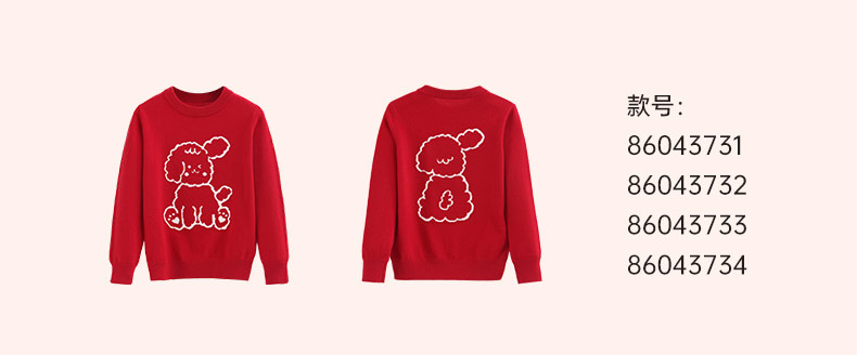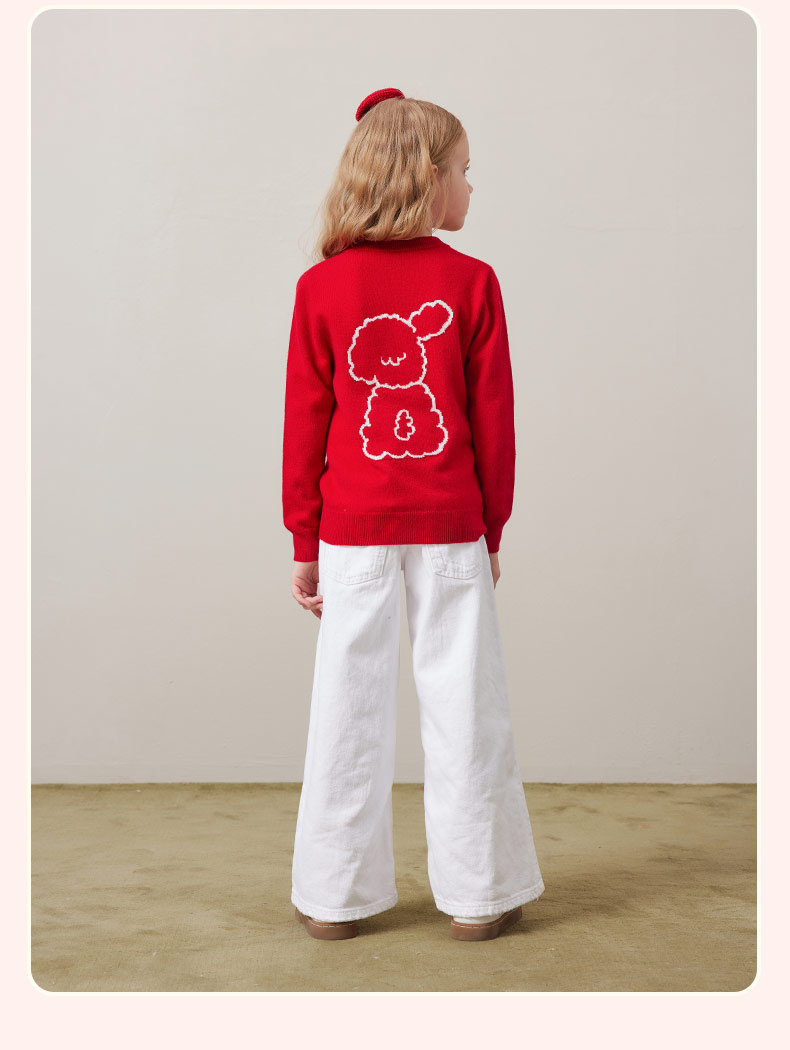 mettekids儿童100%羊绒衫秋冬男童中国红套头毛衣女童针织衫童装