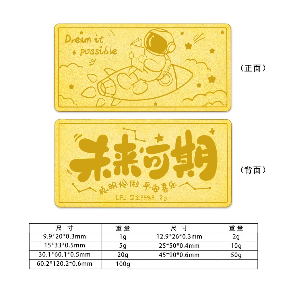 【限时克减128元】【2克】足金999.9 #宇航员 实心2g宇航员金条投资金纯黄金未来可期金条(配亚克力盒)(YDJT00068-02)(预售产品下单后不退款不退货不换货不补差价)