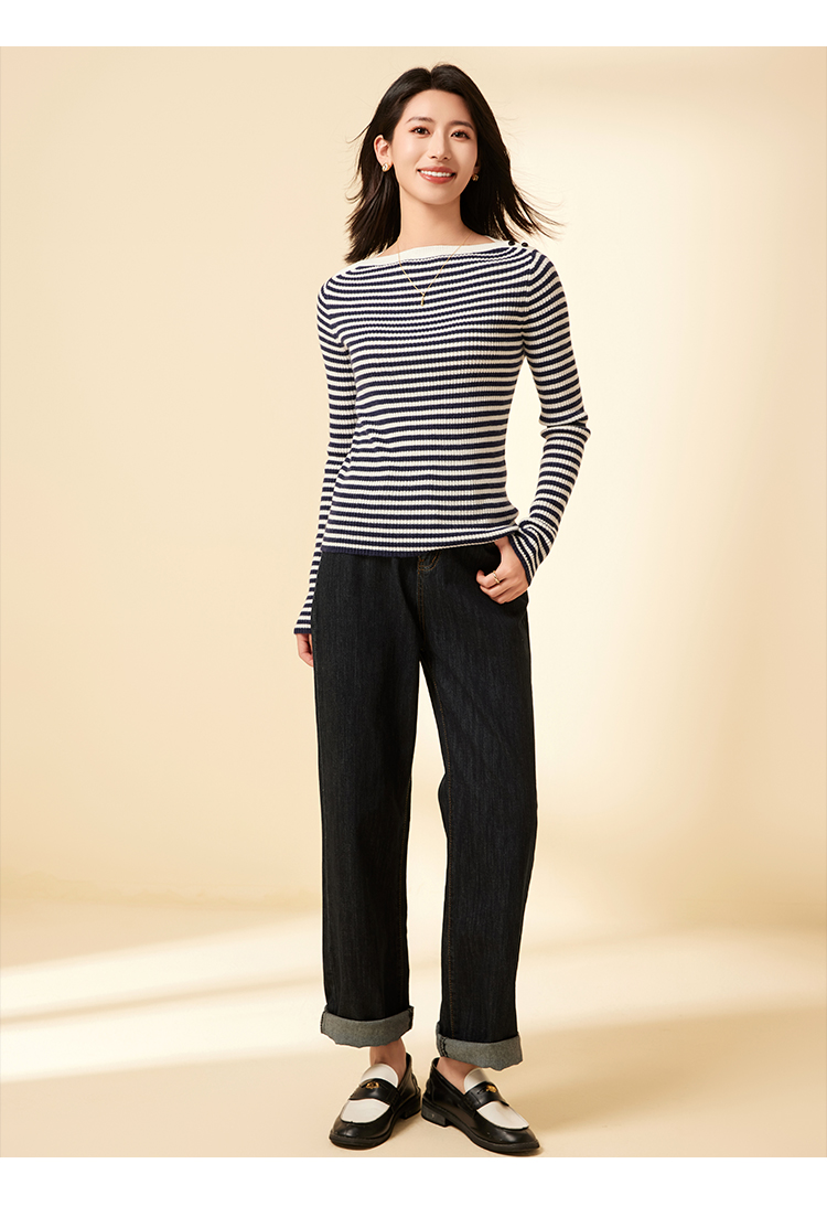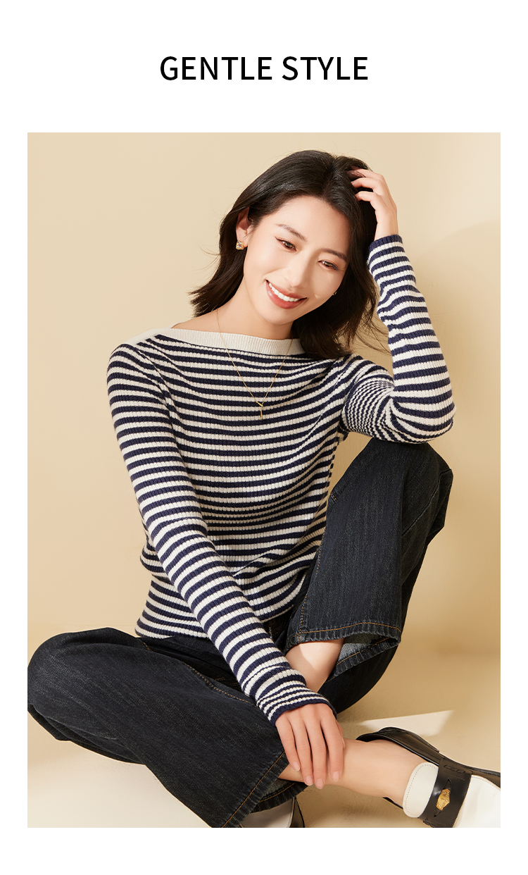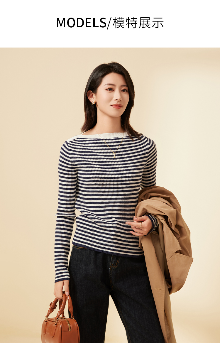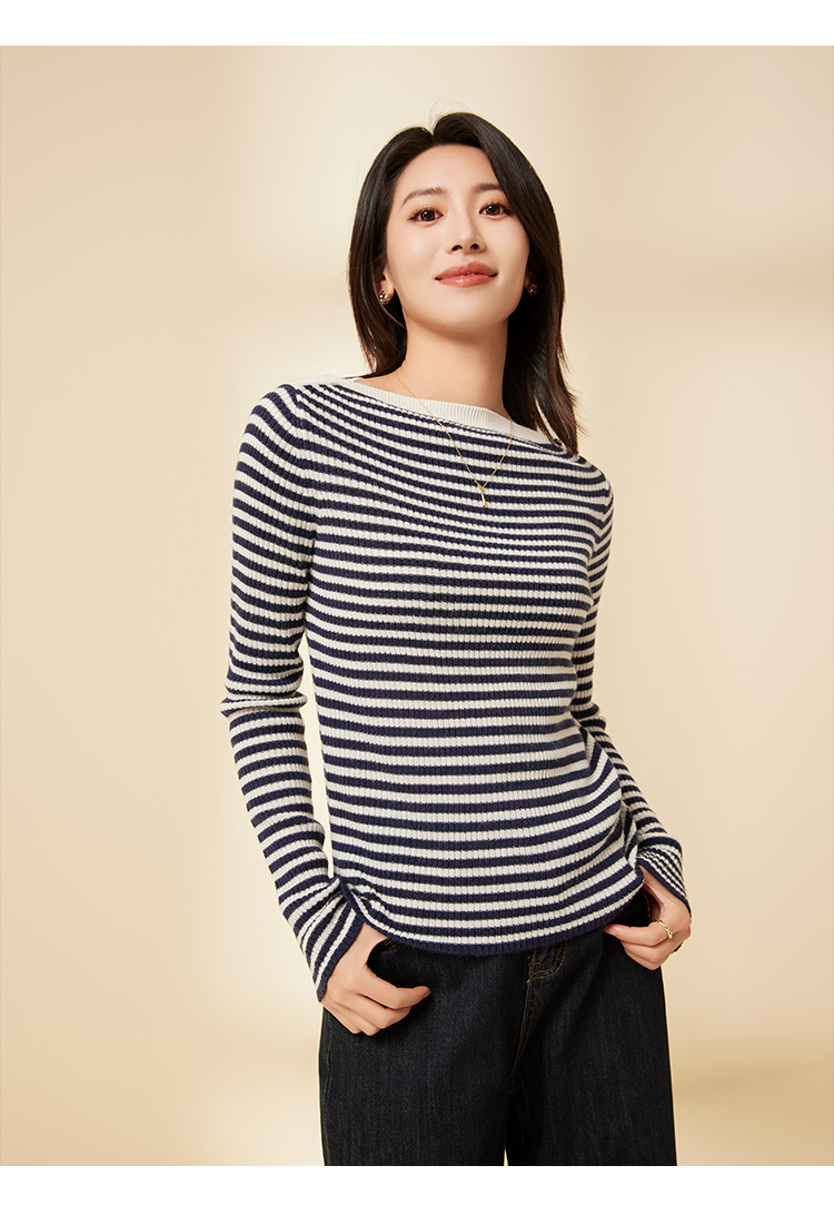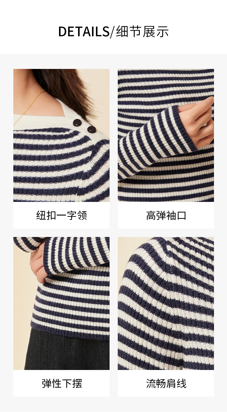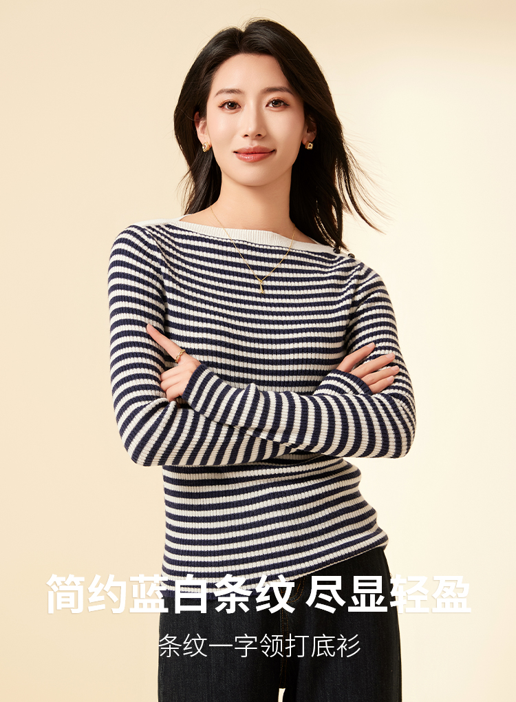I'd爱帝一字领羊毛衫轻熟风正肩显瘦打底针织衫