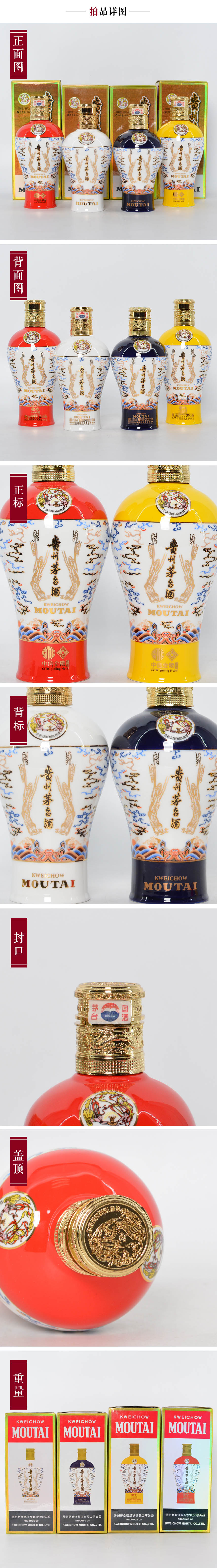 贵州茅台酒中信金陵 蓝红黄白 500ml*4瓶 整套 53度酱香型白酒