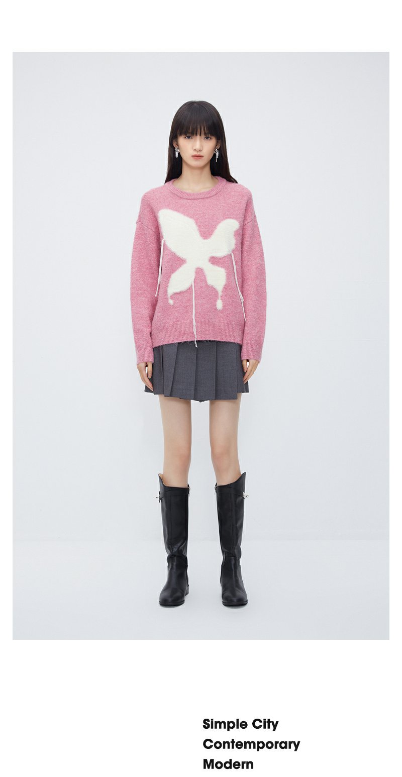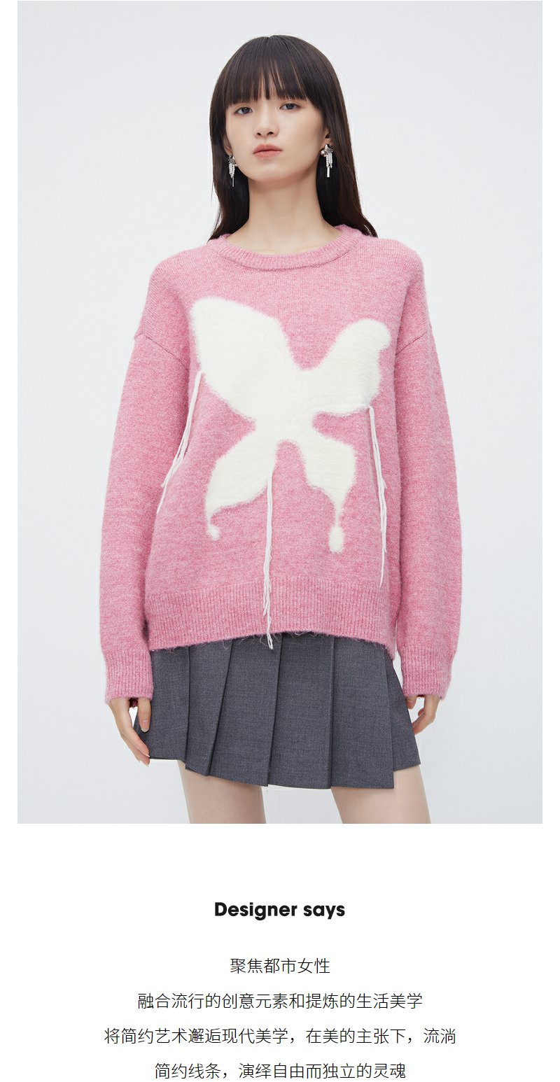 NEELLY纳俪商场同款粉色毛衣女冬季甜美宽松流苏超好看慵懒风毛衣N23103A01080