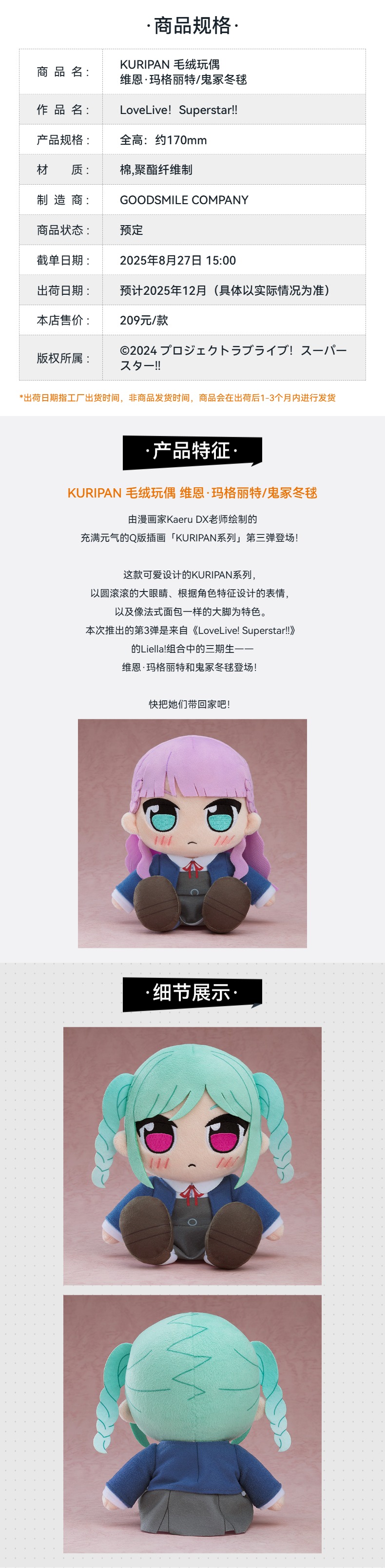 【GSC预售定金】KURIPAN 毛绒玩偶 维恩·玛格丽特/鬼冢冬毬 LoveLive!Superstar!!