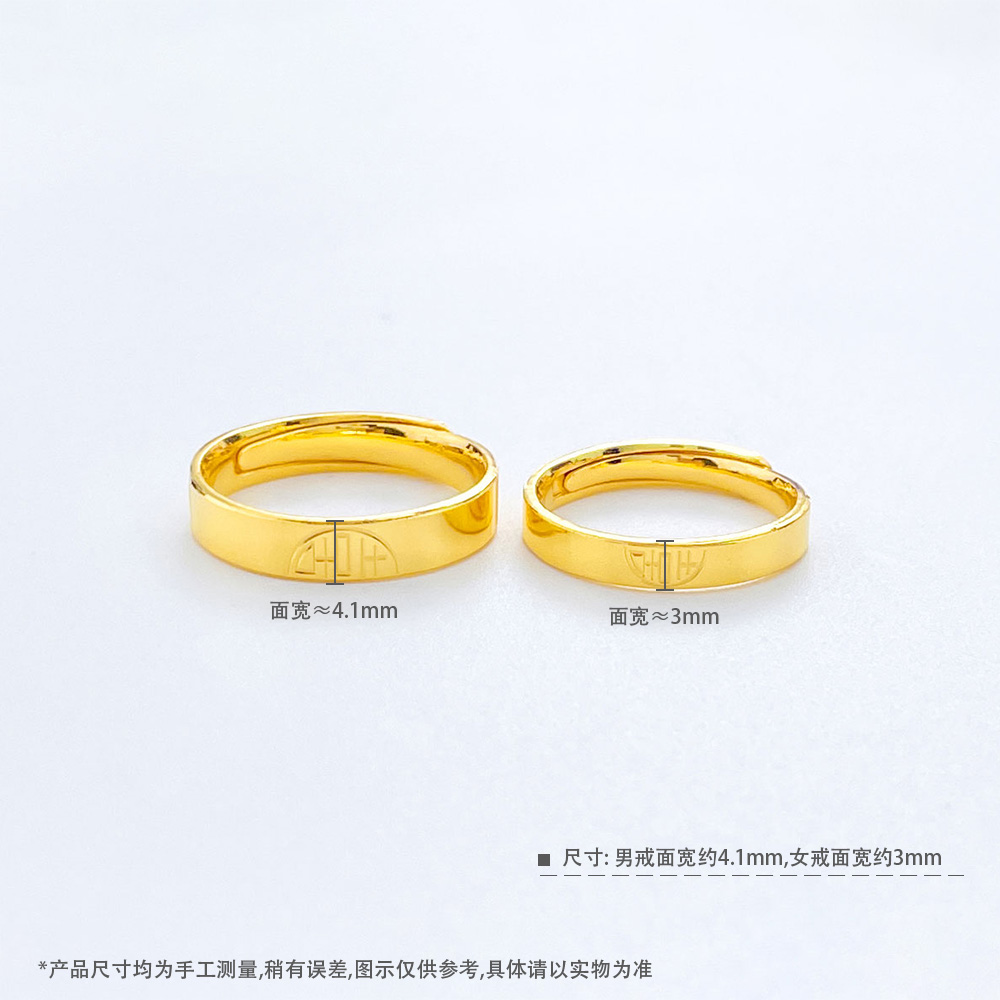 【限时克减128元】足金999.9 #情侣日常 #婚庆 【精品】实心活口戒指喜结连理双喜情侣戒婚嫁婚庆对戒/对(AVQLJ00006)预售产品下单后不退款不退货不换货不补差价
