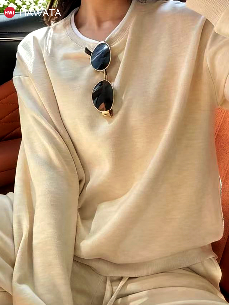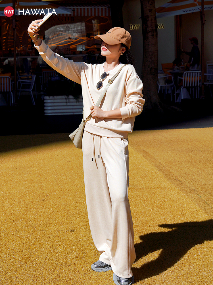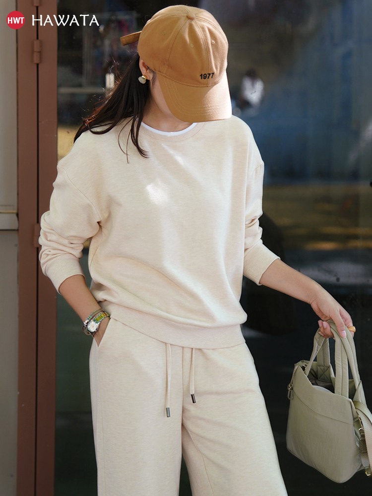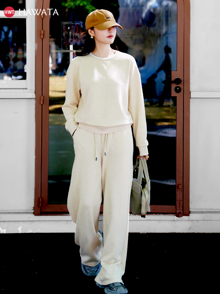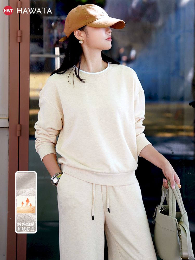 哈瓦塔双层圆领拼色科技绒套装 H350161
