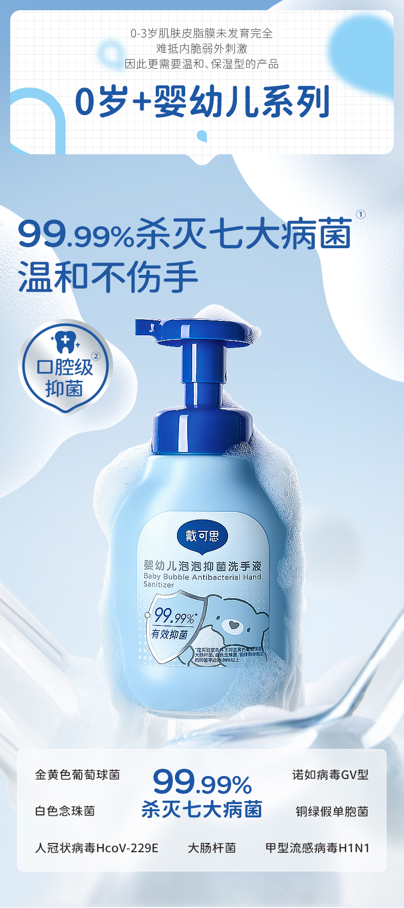 戴可思婴幼儿泡泡抑菌洗手液口腔级抑菌温和不伤手♥