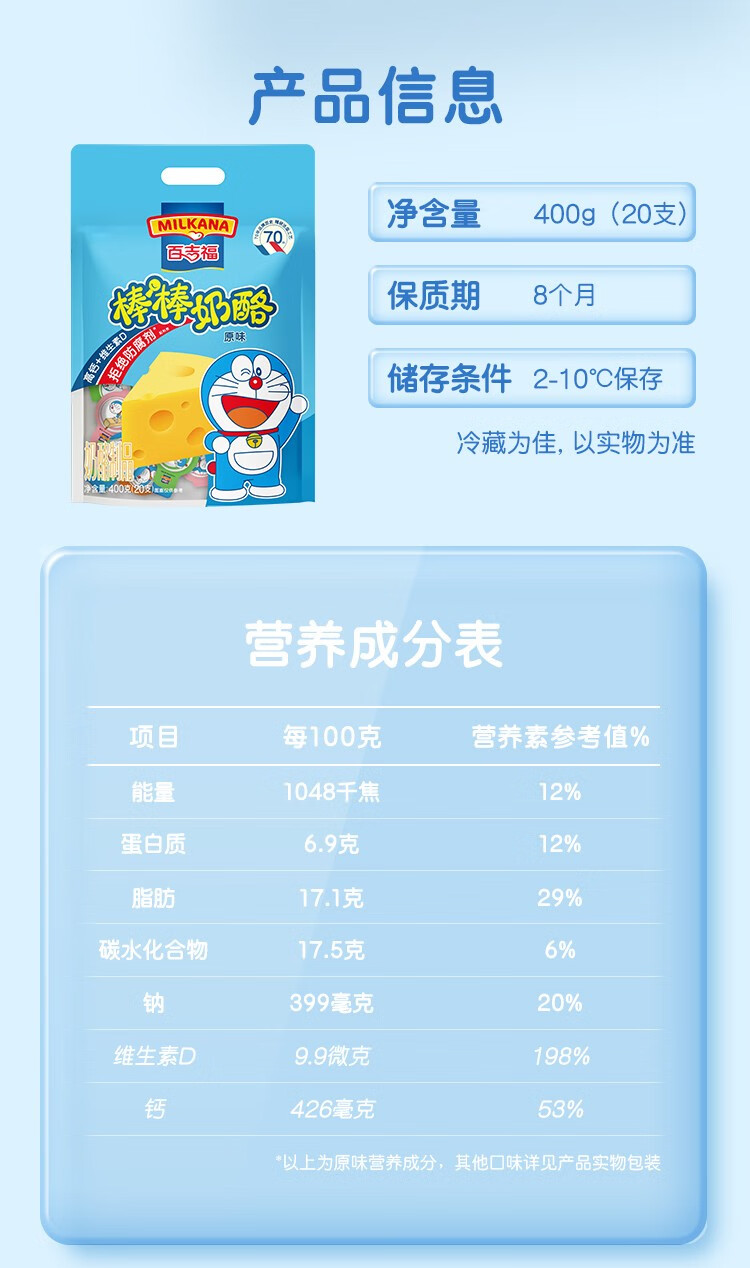 百吉福棒棒奶酪香草冰淇淋味400g/袋