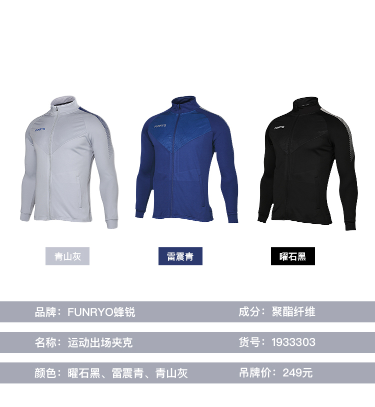 蜂锐FUNRY秋冬修身运动足球户外热身出场夹克外套