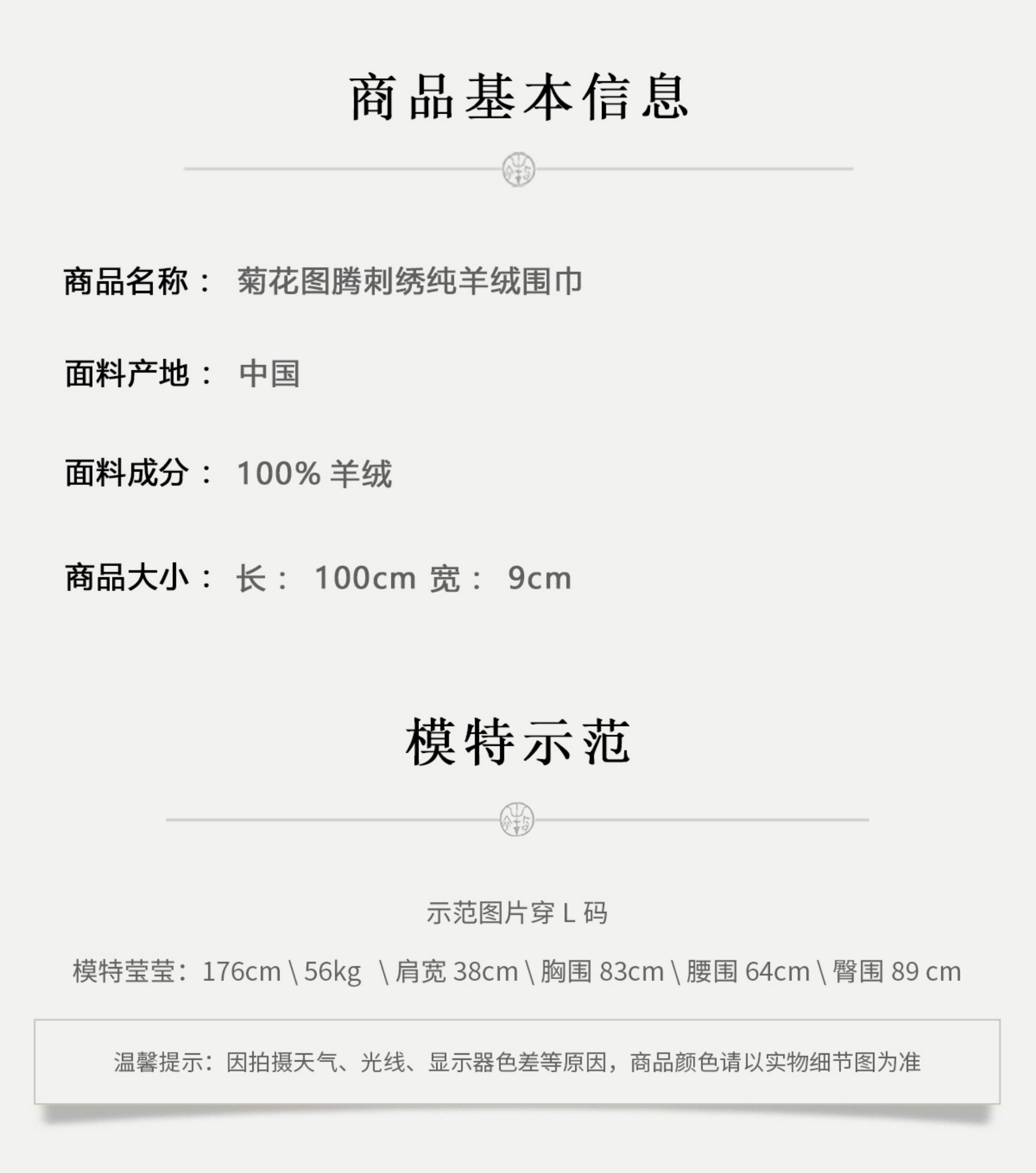 牧衣游原创 菊花刺绣纯羊绒围巾----- 暖暖【不支持会员折】