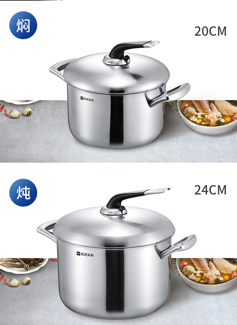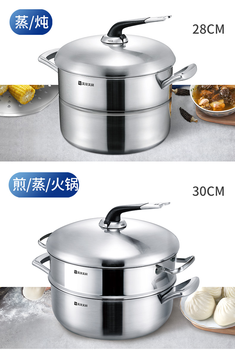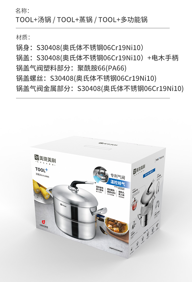 美珑美利 TOOL+系列汤锅奶锅蒸锅不锈钢加厚汤锅三层钢 20cm汤锅+蒸笼