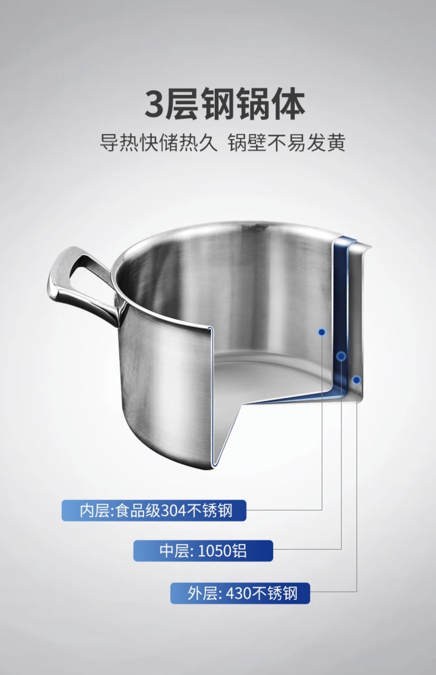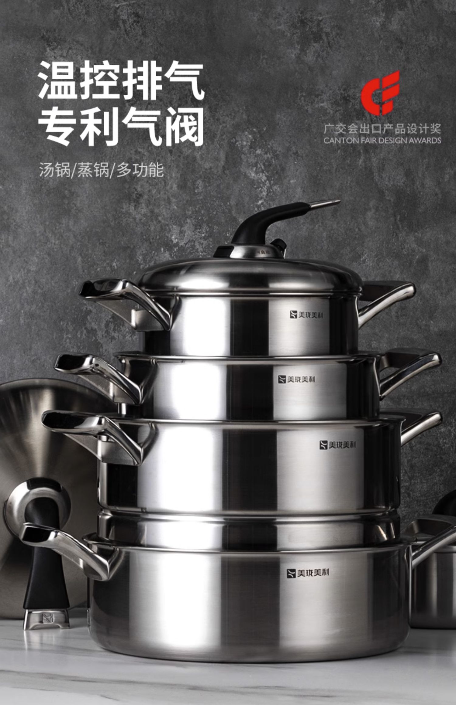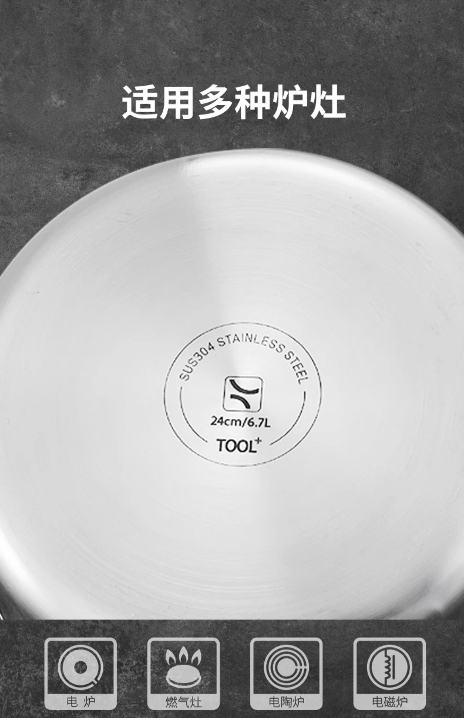 美珑美利 TOOL+系列汤锅奶锅蒸锅不锈钢加厚汤锅三层钢 20cm汤锅+蒸笼