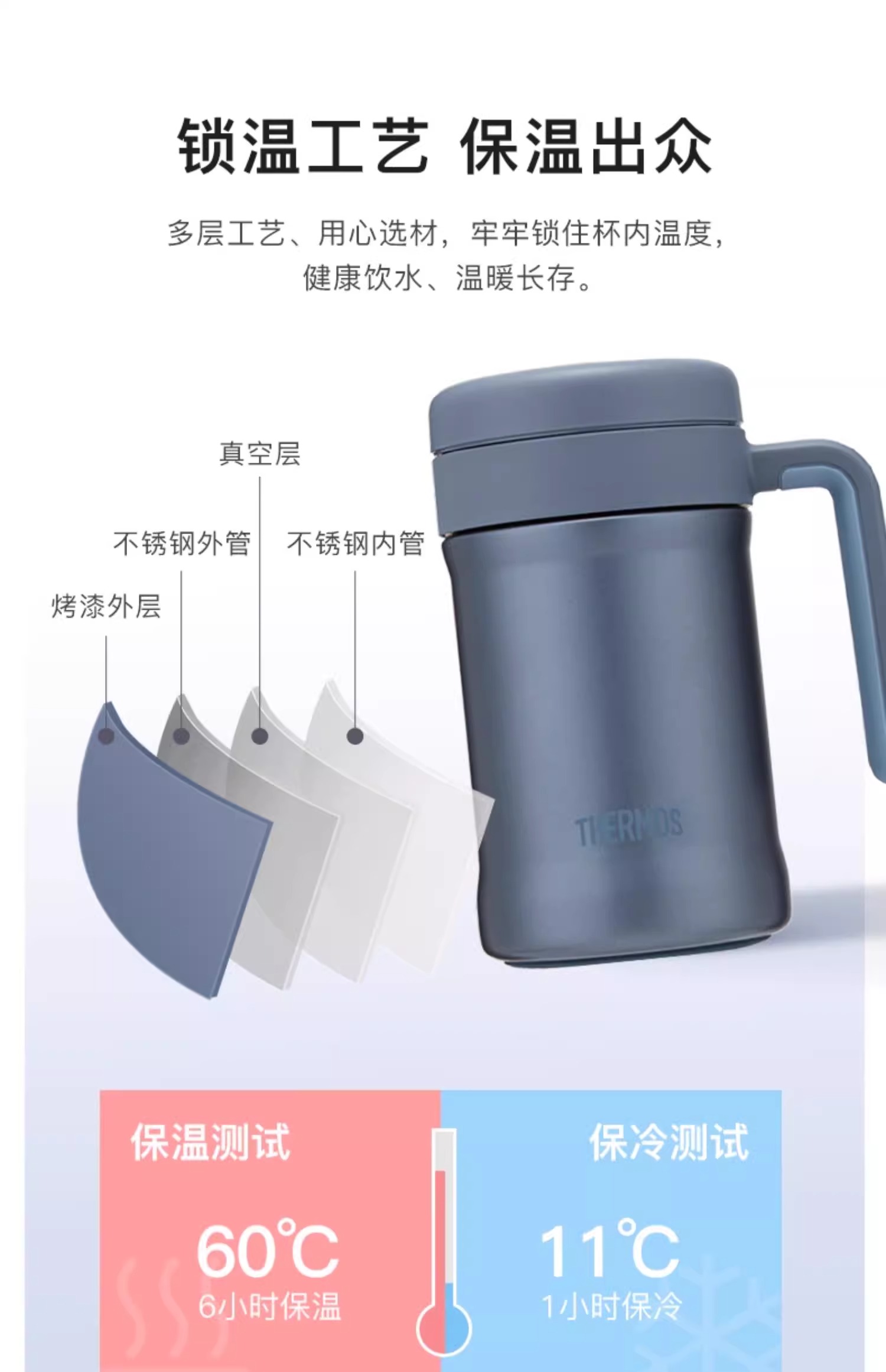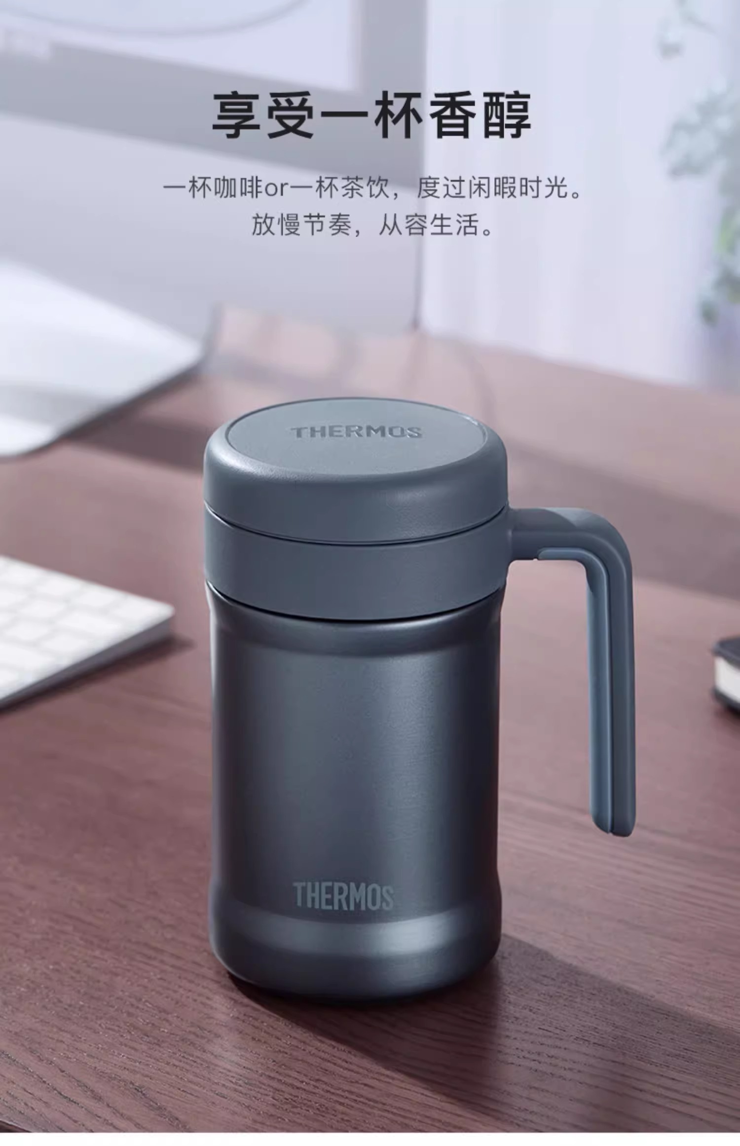 膳魔师新品保温杯不锈钢商务办公茶杯大容量简约把手杯TCNE-500S