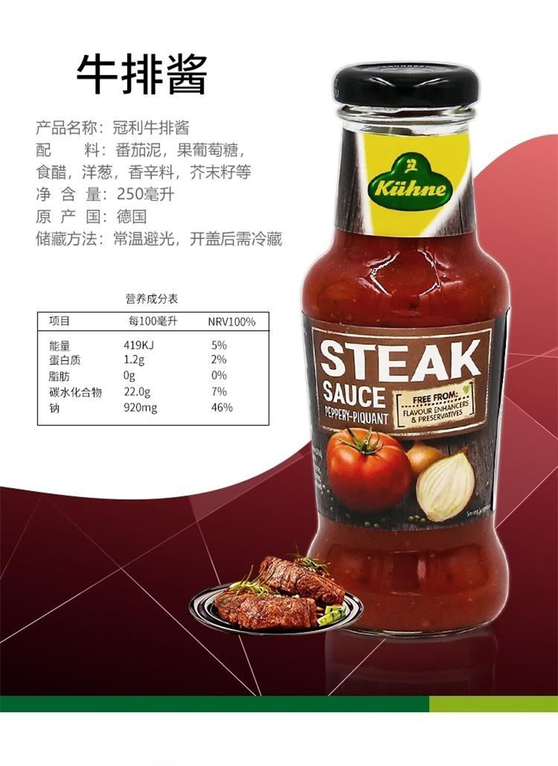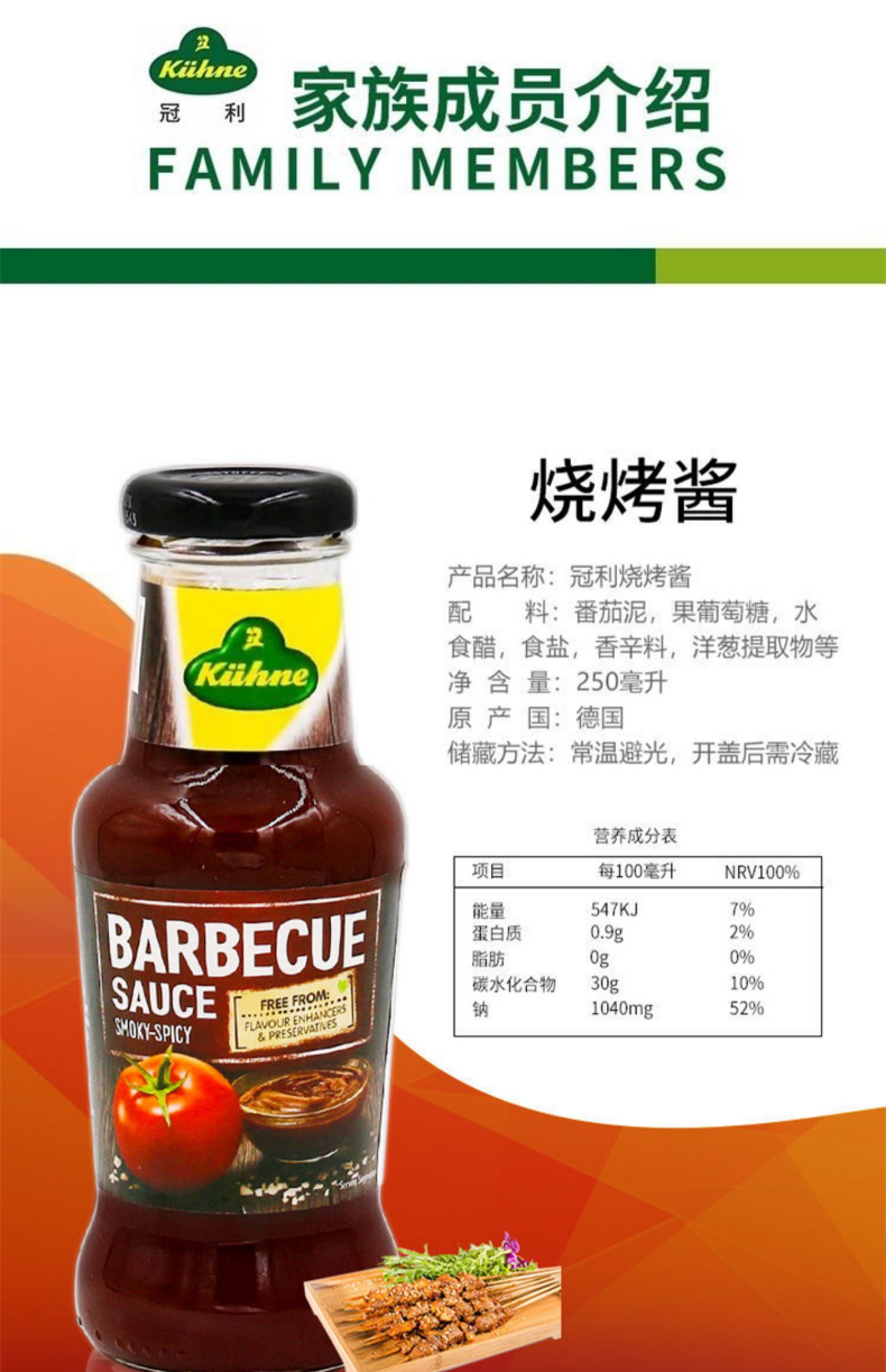 【中欧班列精选】德国调味酱 原装进口德国冠利咖喱/烧烤/牛排/蒜味/辣椒/塔塔酱250ml/瓶