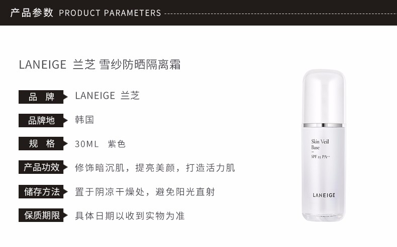 LANEIGE 兰芝 雪纱防晒隔离霜 紫色 30ml 韩国