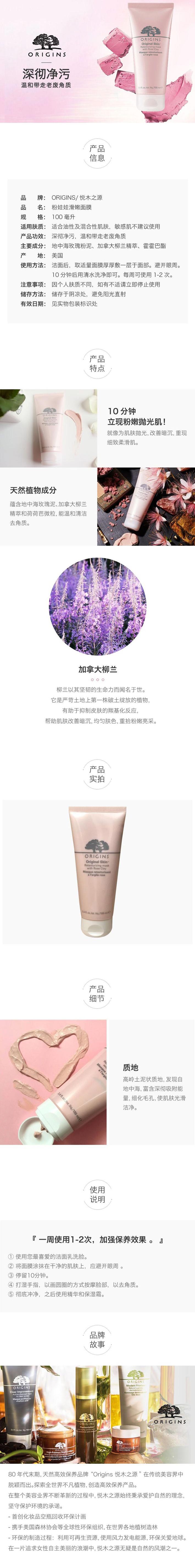 ORIGINS 悦木之源 粉娃娃滑嫩面膜 100ml 美国