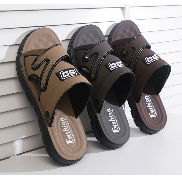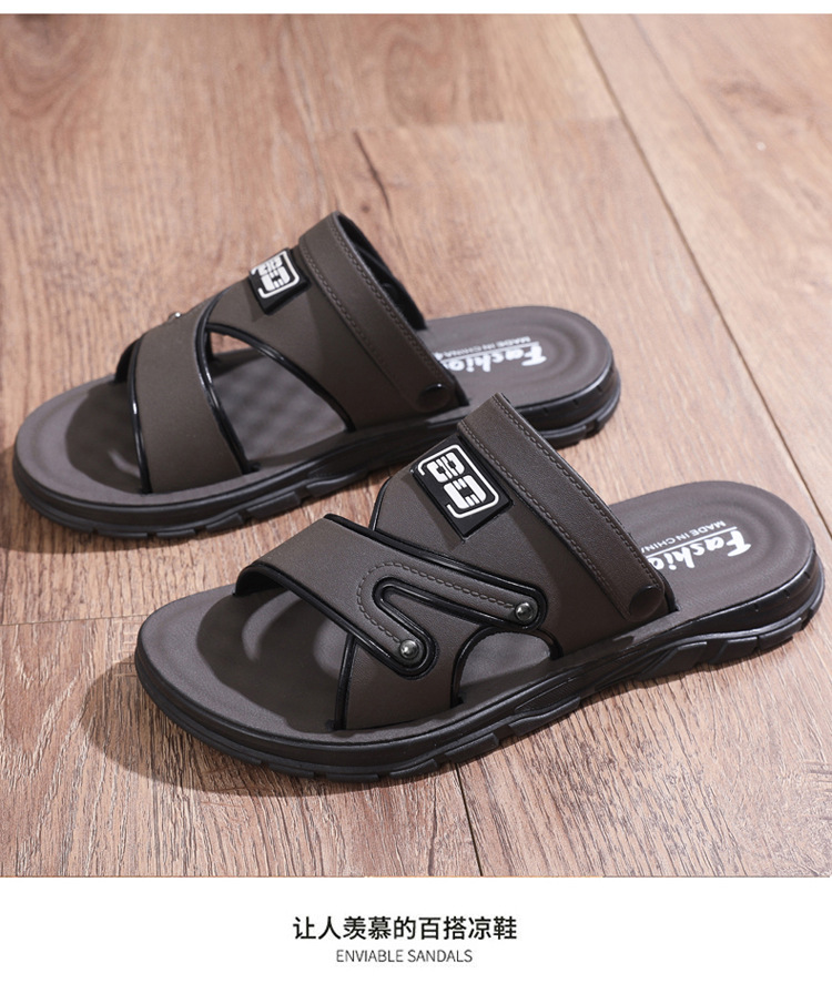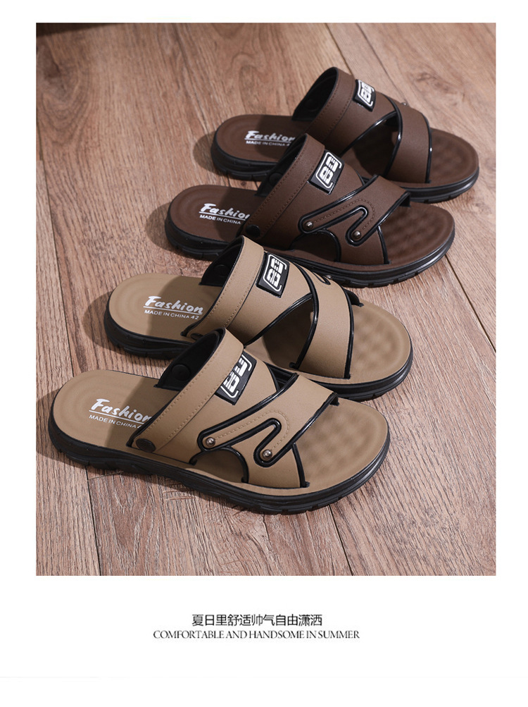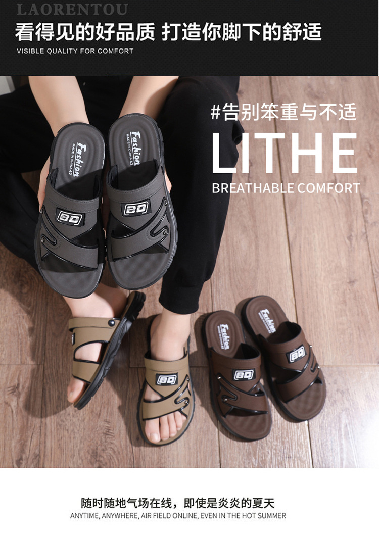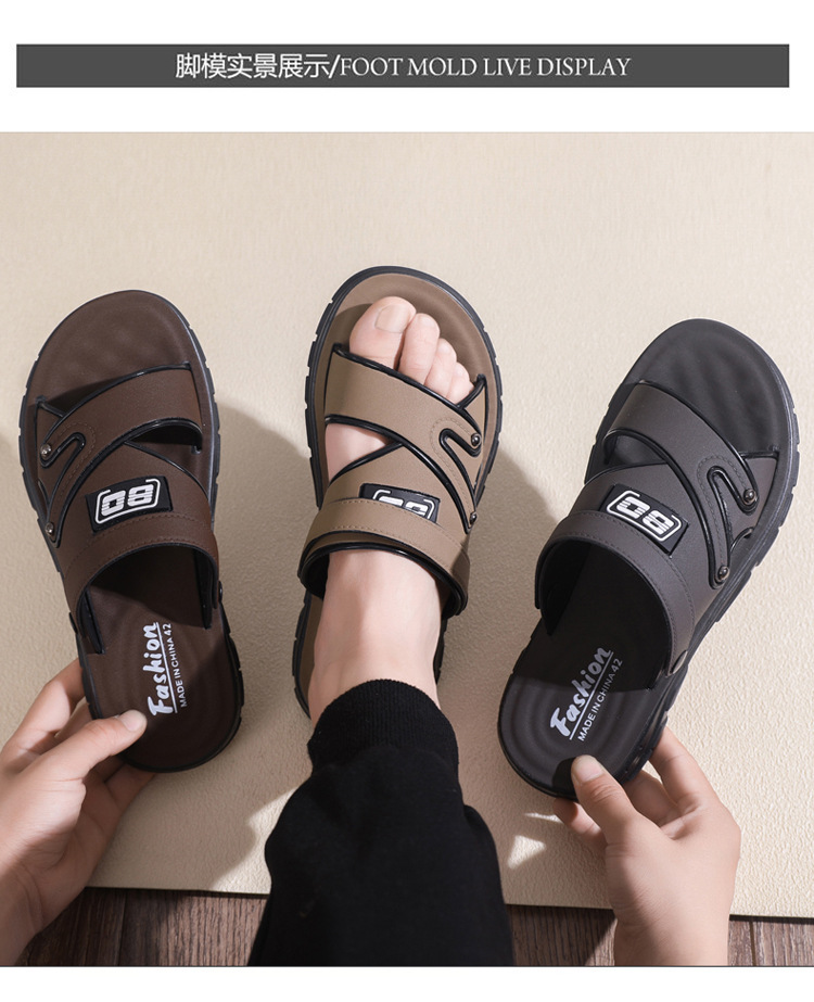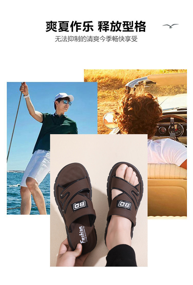 「29.9包邮!抖音同款」踩屎感凉鞋 男夏季新款厚底防臭皮革凉拖鞋男士中年爸爸防滑沙滩鞋