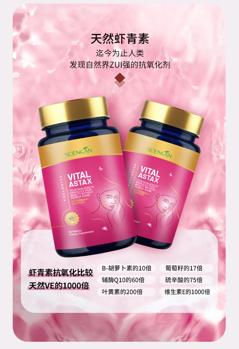 【Scenkan】大含量虾青素精华片胶囊美国进口天然雨生红藻球6mg口服成人抗氧化