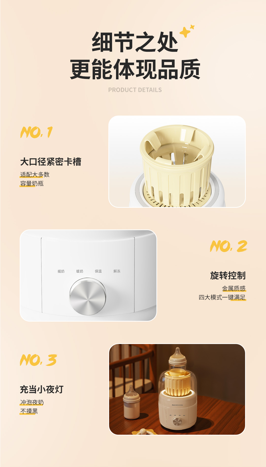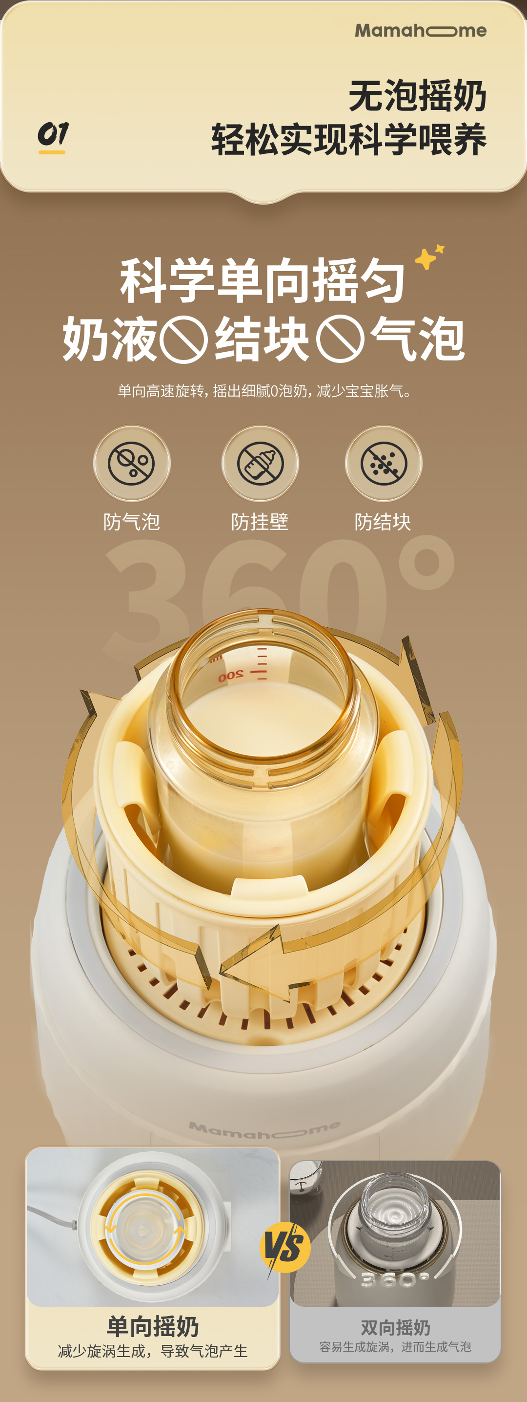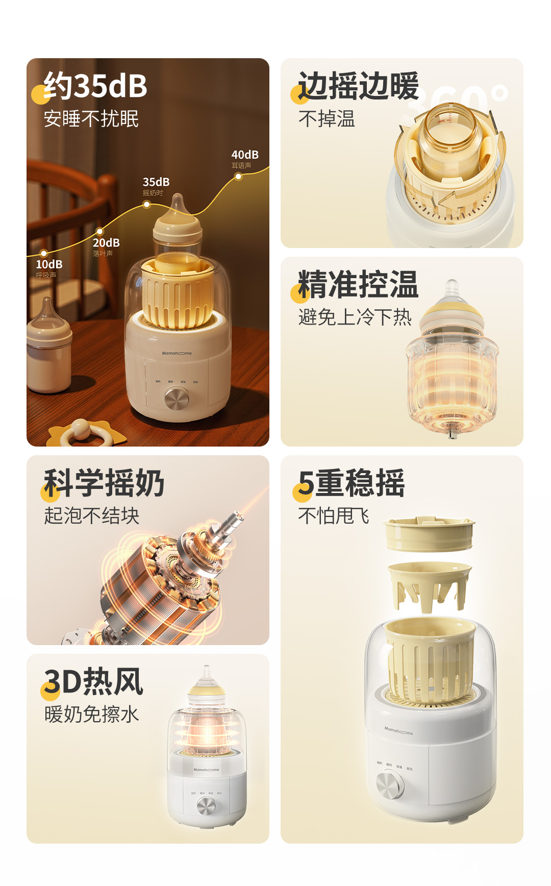 Mamahome新品摇奶器暖奶二三合一全自动智能电动MS106-1