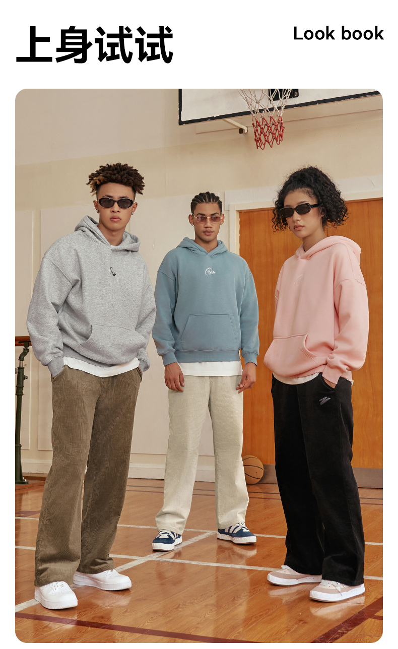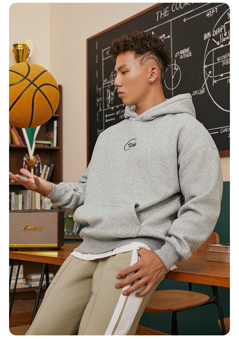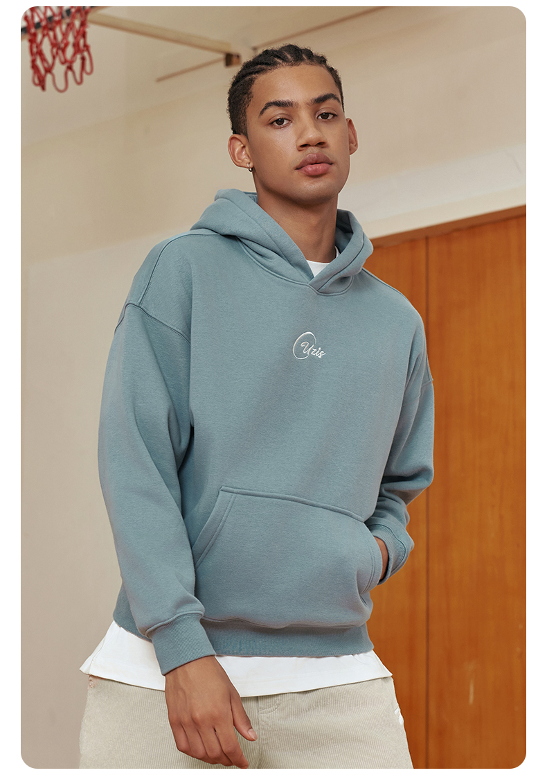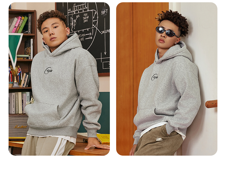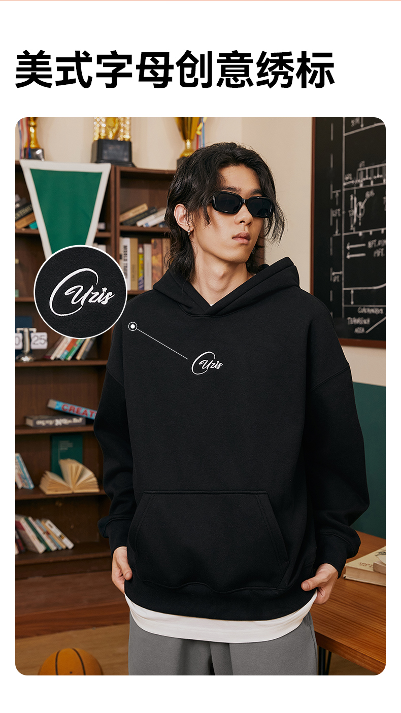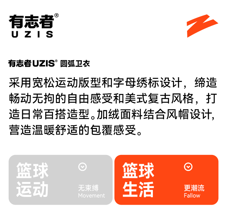 有志者UZIS休闲运动卫衣男秋冬加绒保暖美式复古篮球套头帽衫圆弧