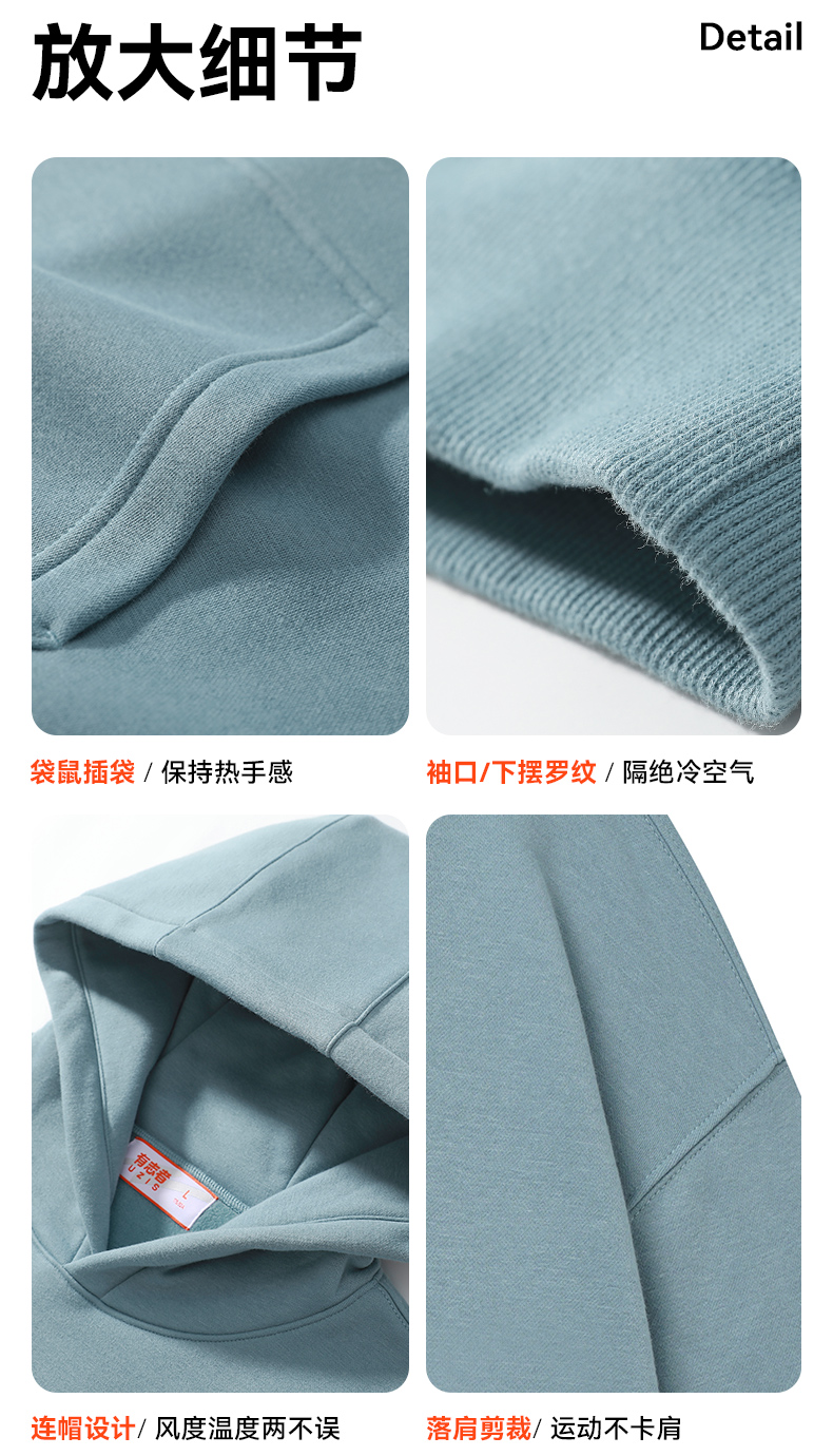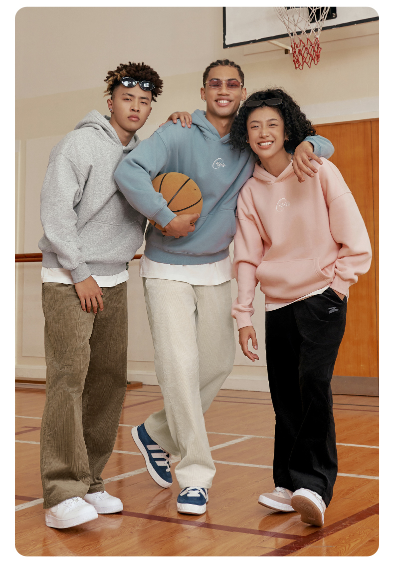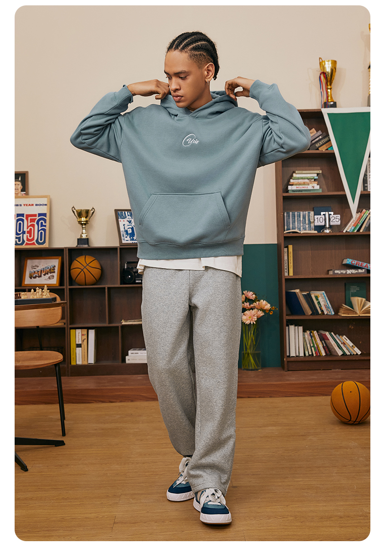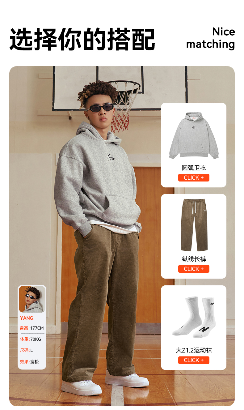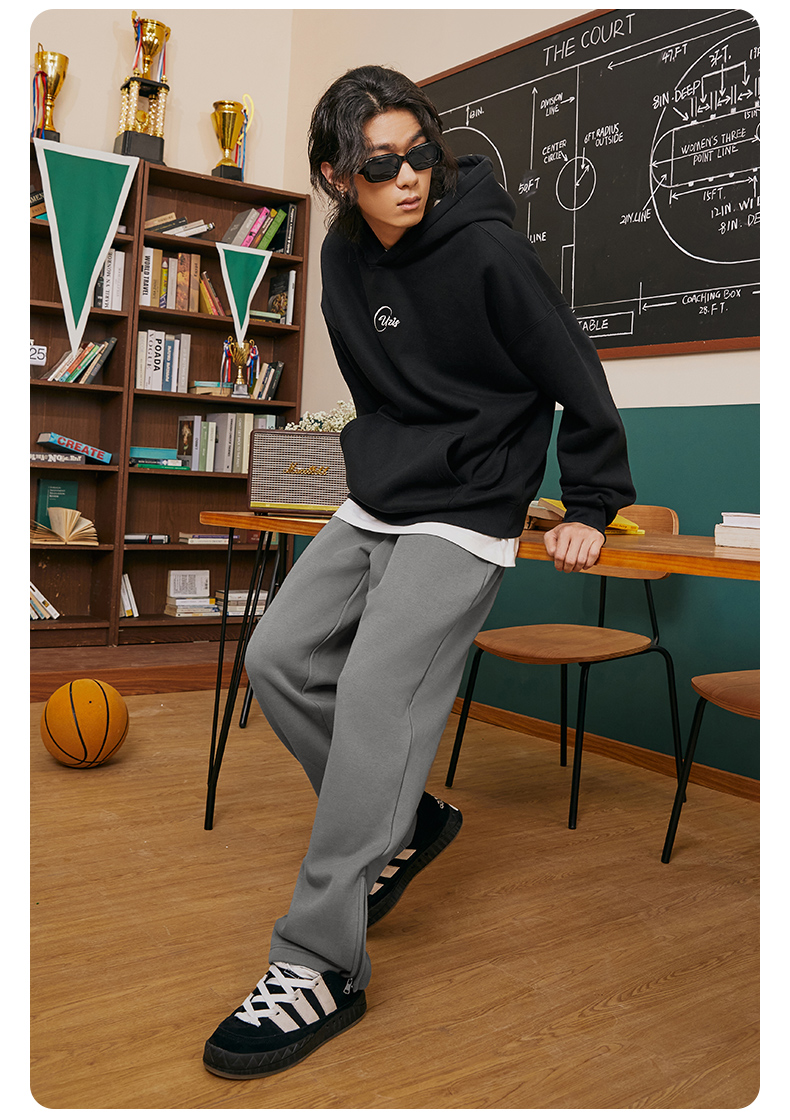有志者UZIS休闲运动卫衣男秋冬加绒保暖美式复古篮球套头帽衫圆弧