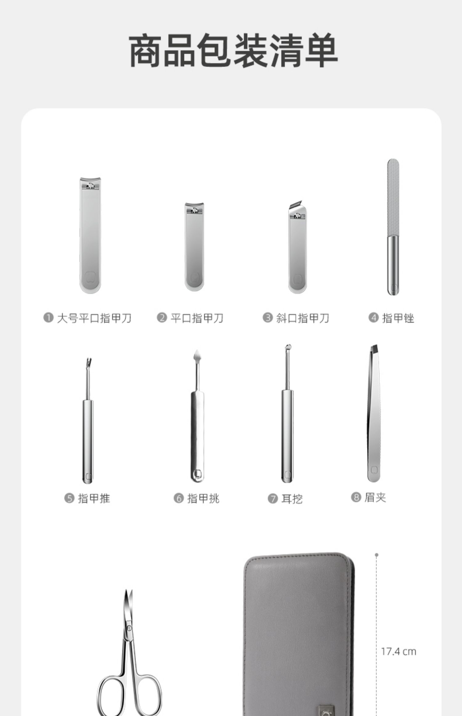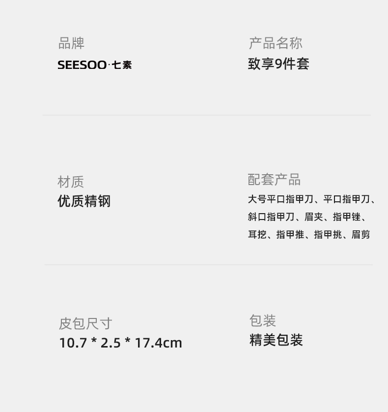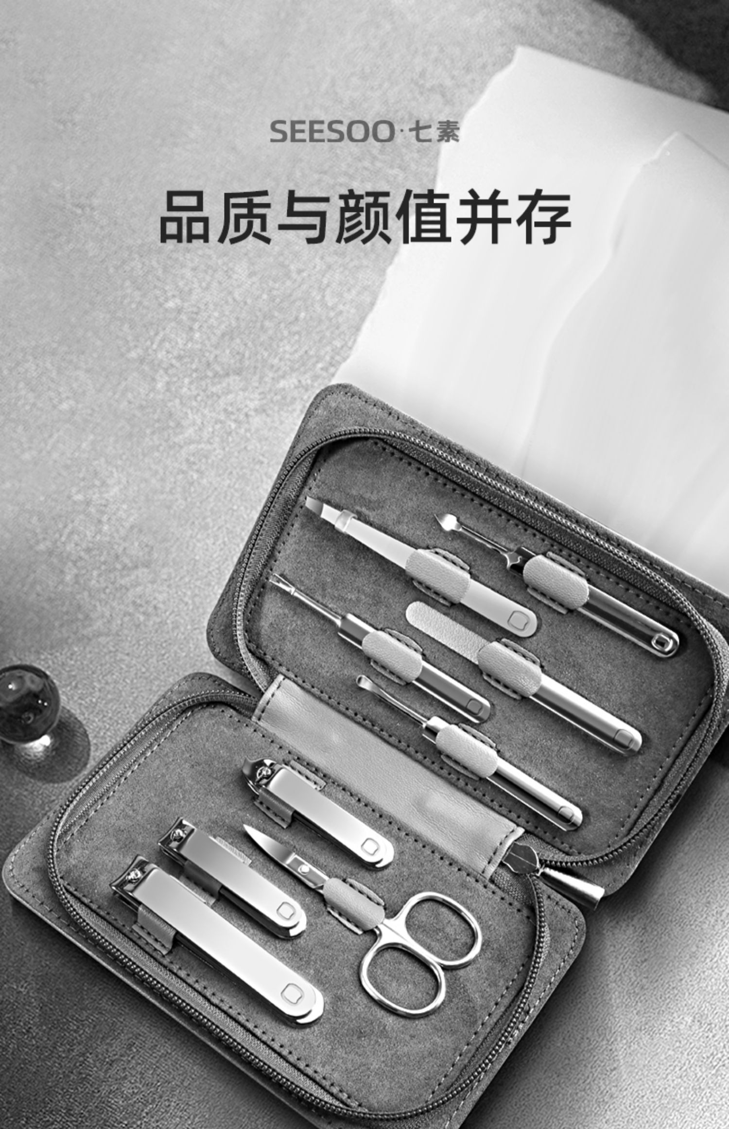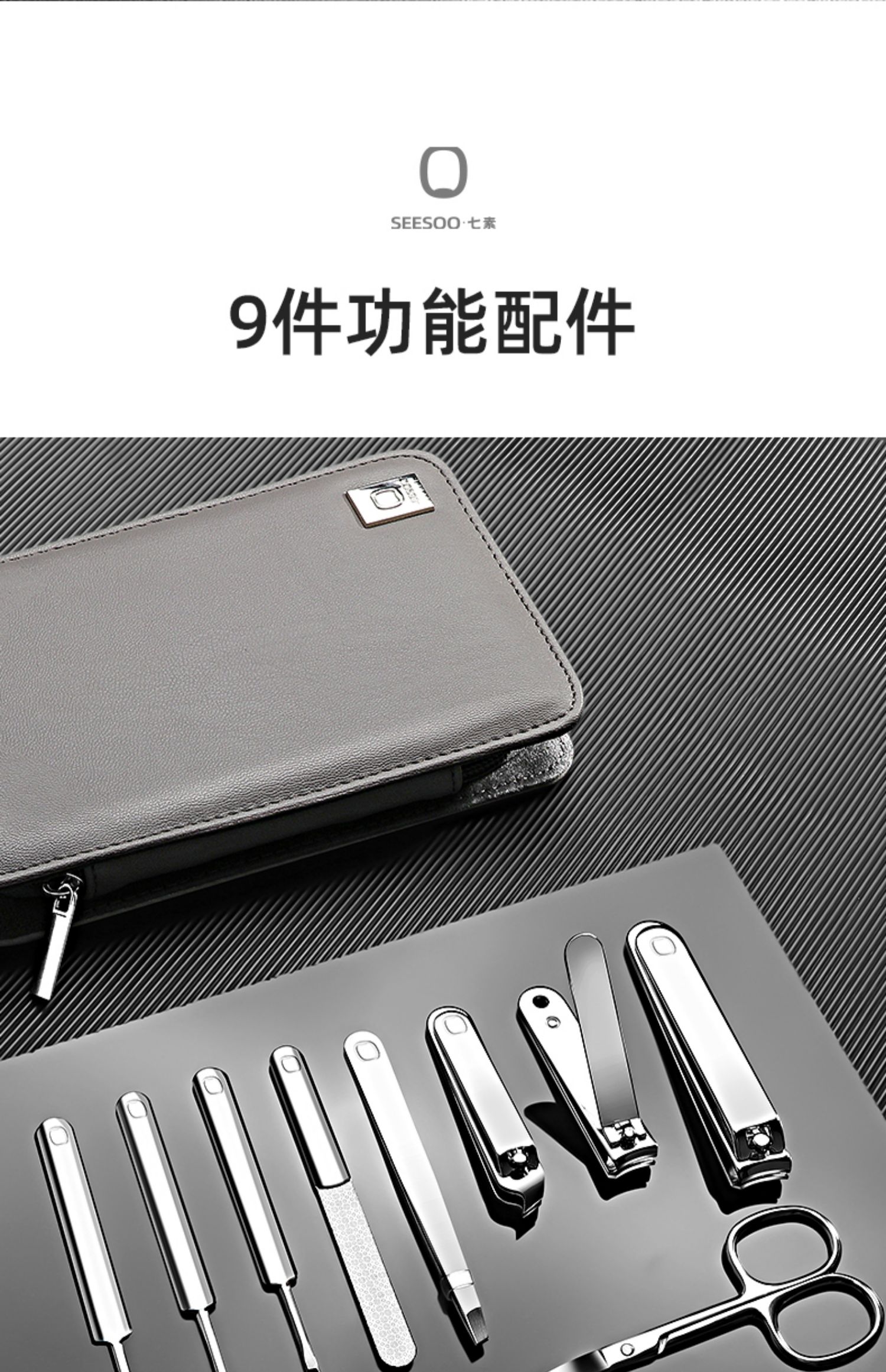 seesoo/七素指甲刀套装指甲剪工具定制指甲钳刻字家用不锈钢9件套致享•9件套 七素指甲刀指甲剪