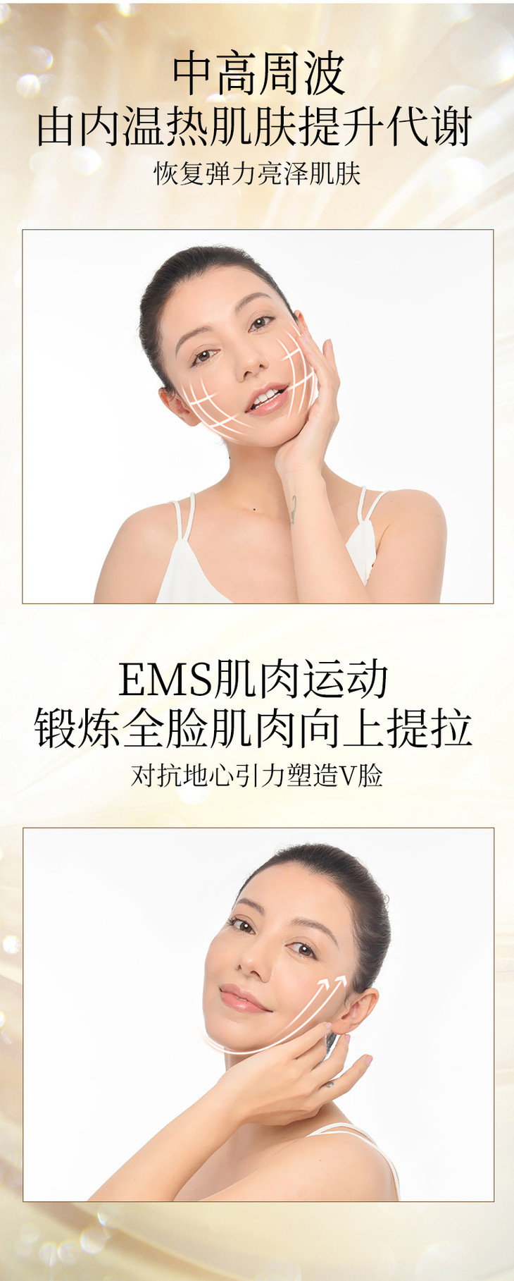 2.9个镀金导头,微电流脉冲刺激更精确,紧致效果加强