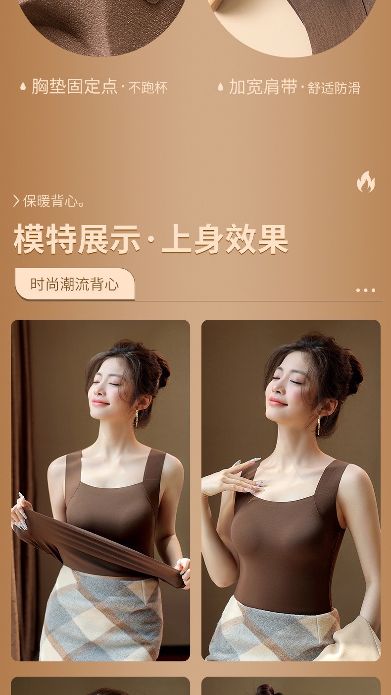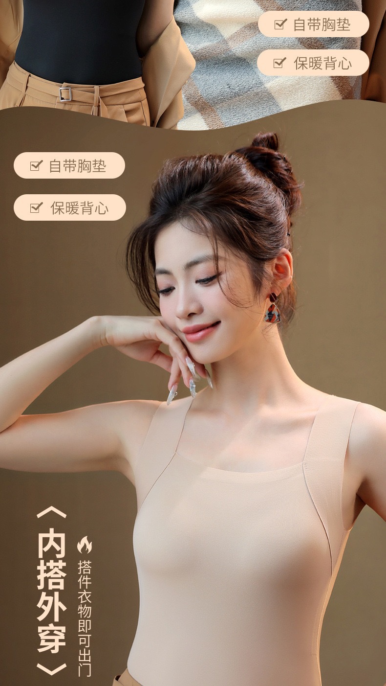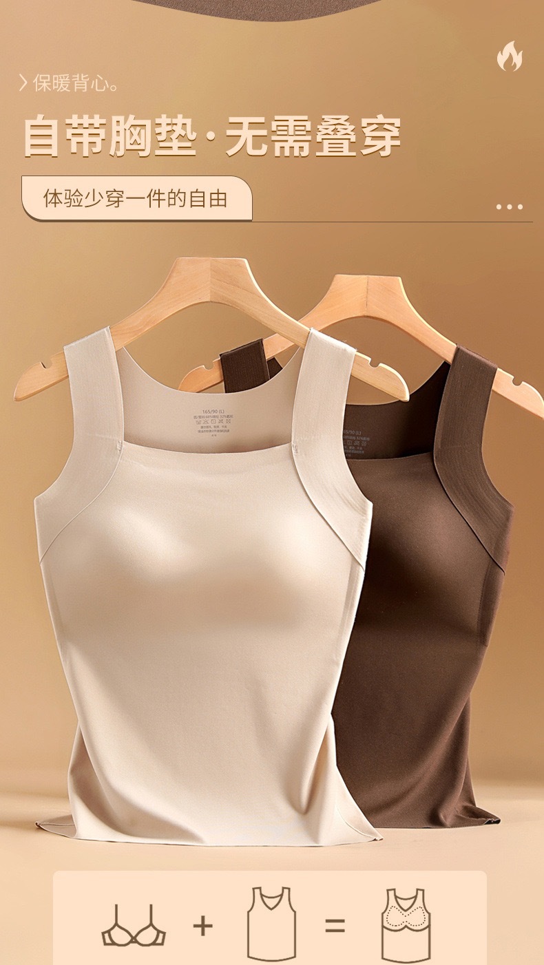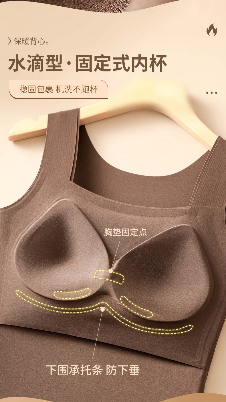 【买一送一】保暖内衣免穿文胸新品秋冬款云朵无痕润肤裸感肌底衣保暖背心女固定杯美肤打底秋衣